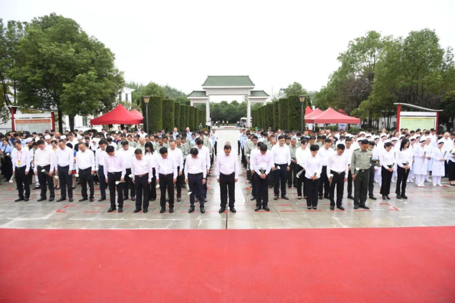 松柏万年青,烈士英名存。绿树环绕的烈士陵园庄严肃穆,革命烈士纪念碑巍然矗立。市委书记盛文军,市人大常委会主任金茂清,市政协主席黎喜斌,市委副书记、政法委书记严义高,市委、市人大常委会、市政府、市政协领导和三百余名各界代表手持鲜花肃立在革命烈士纪念碑前。