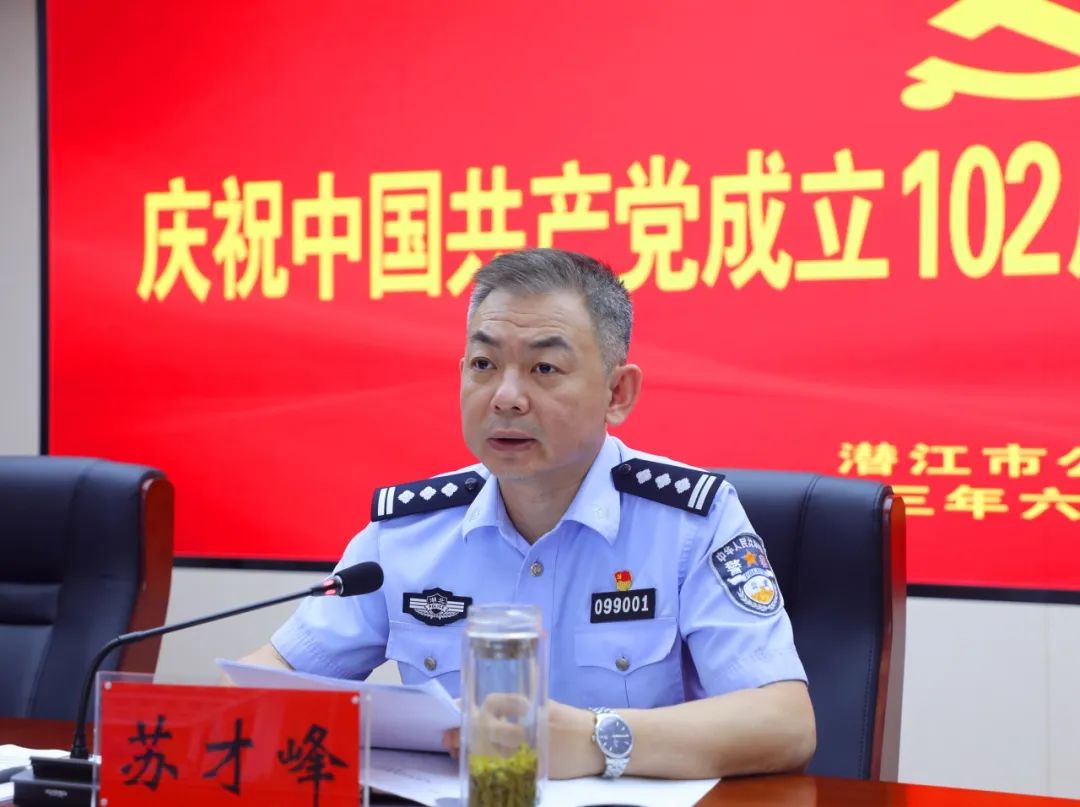 6月29日,潜江市公安局召开庆祝建党102周年暨“七一”表彰大会。副市长、公安局党委书记、局长苏才峰同志出席会议并讲话,党委副书记、政委蒋代永主持会议。