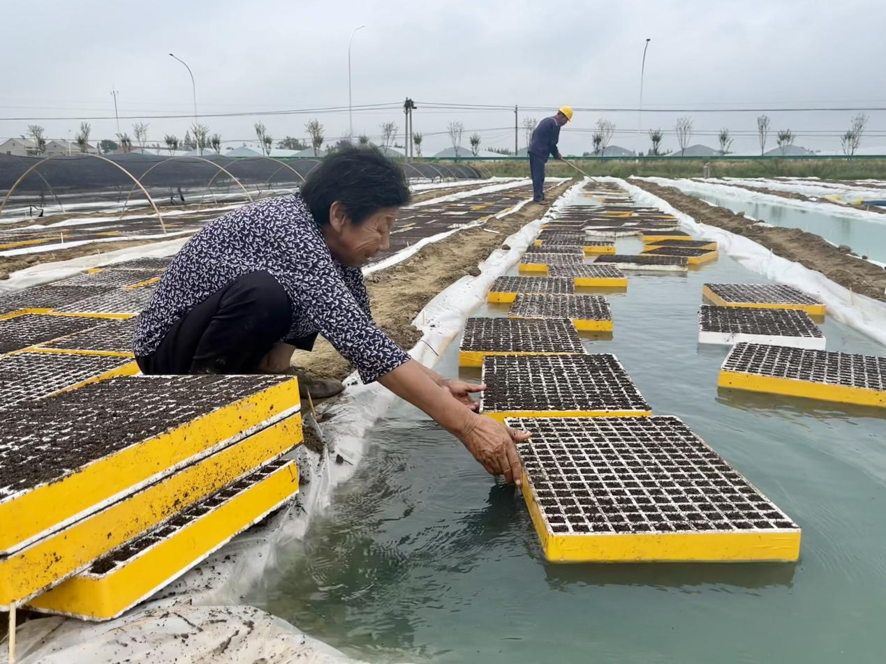 潜江新闻网讯(记者 余晓勤)9月10日下午,记者在位于竹根滩镇王拐村的潜江市竹瑞种植专业合作社的蔬菜种植基地看到,工人们正在将育苗盘放在营养水槽里湿水,田间一片秋菜播种育苗的景象,一个个黑色遮阳网成为田园一道独特的风景。