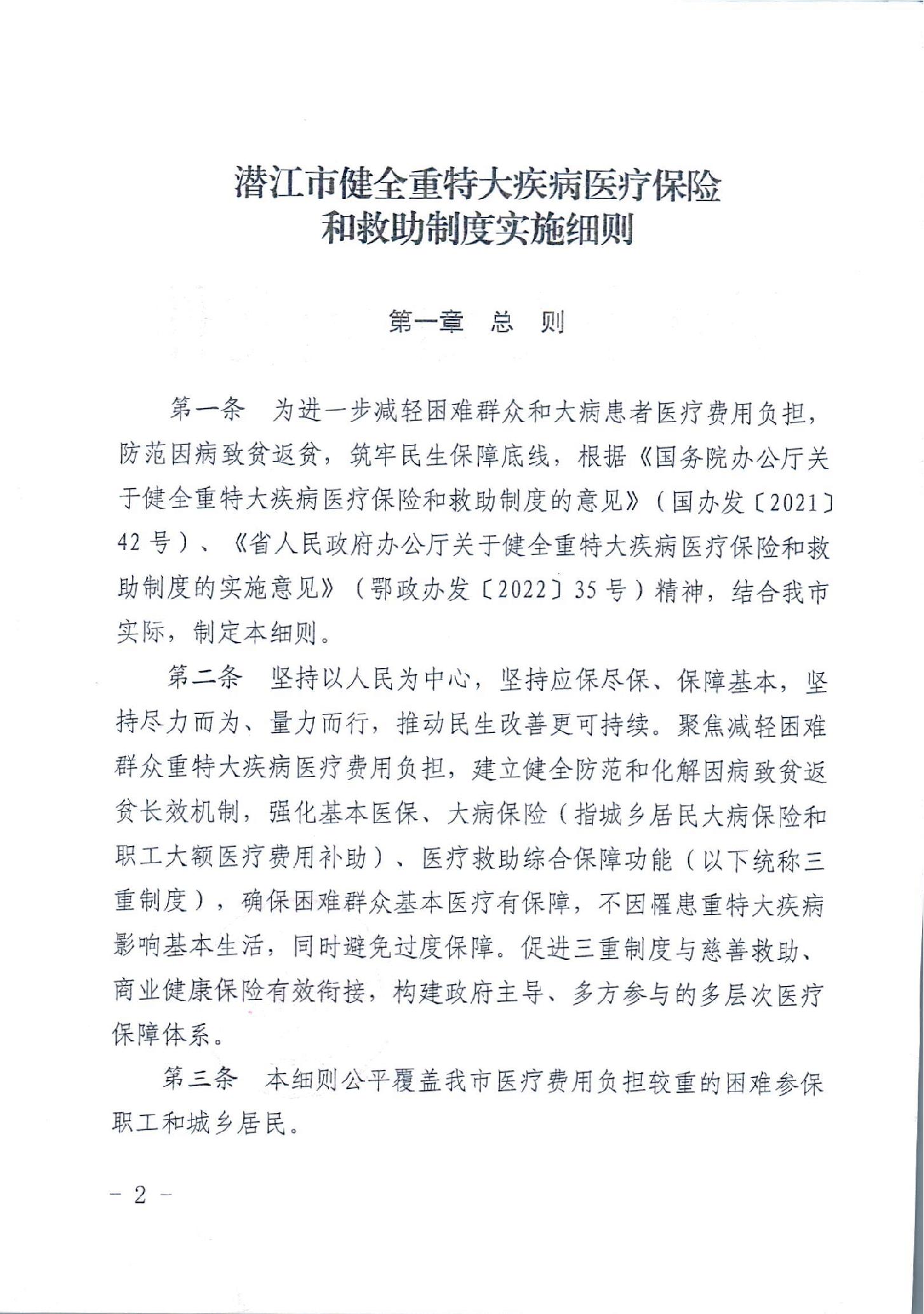 关于印发《潜江市健全重特大疾病医疗保险和救助制度实施细则》的通知