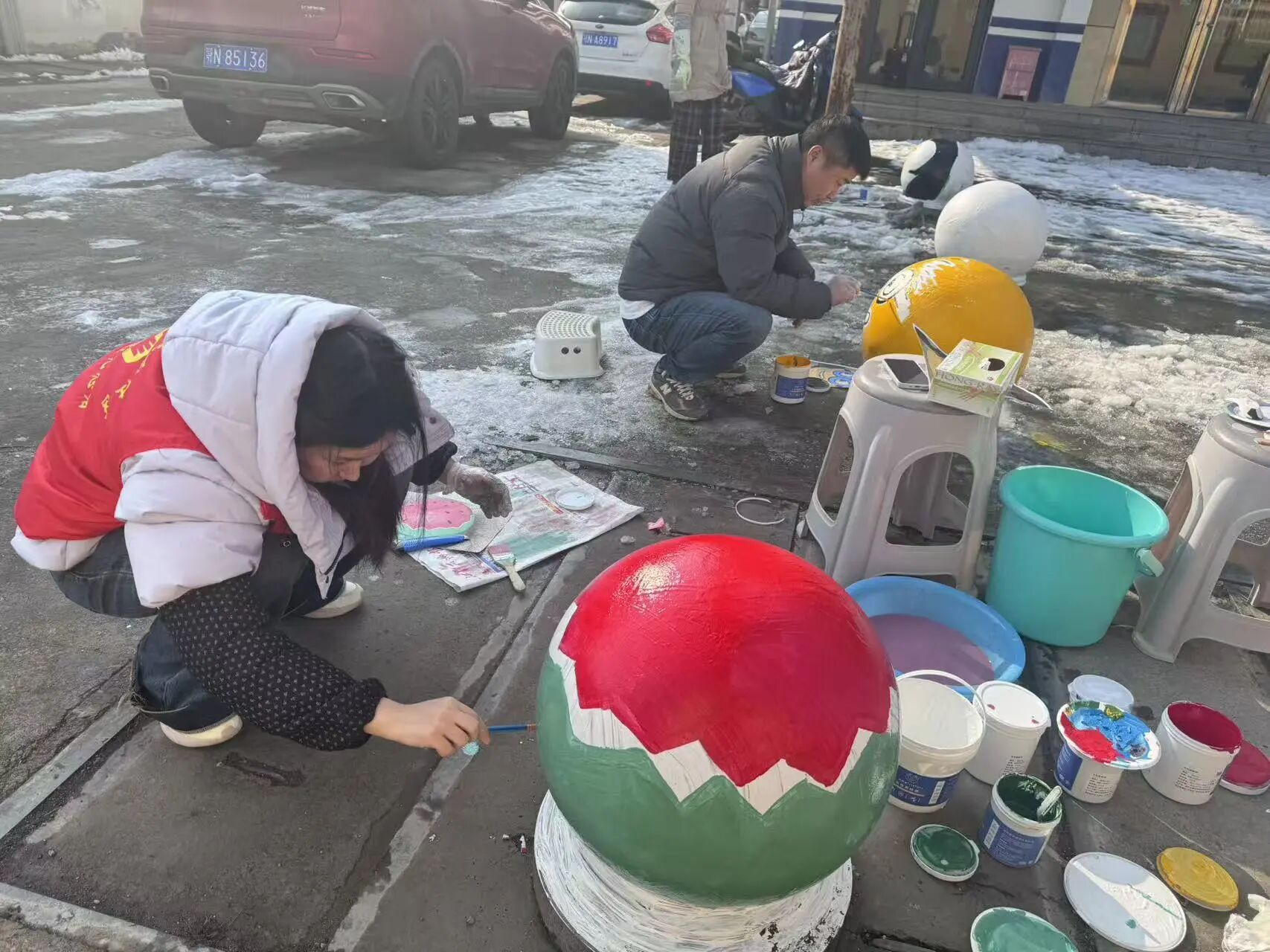 在彩绘现场,尽管积雪未融、寒风刺骨,社区志愿者们依然热情不减。他们手持画笔,细致勾勒每一处图案,用实际行动诠释着“群众参与、共建共享”的山墙文化内涵。居民们纷纷驻足观看,不少人主动上前帮忙递工具、提建议,现场洋溢着温暖融洽的氛围。