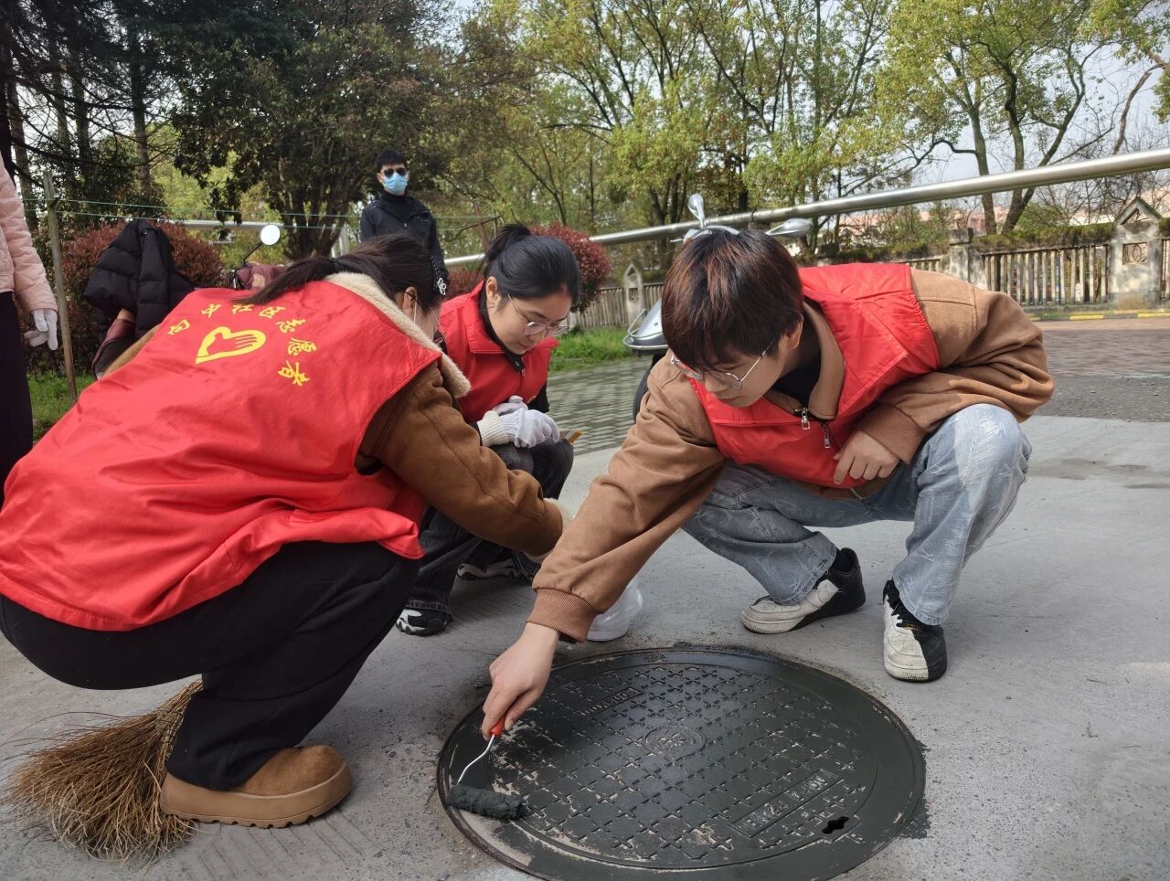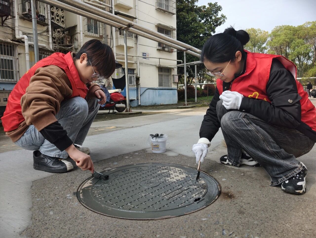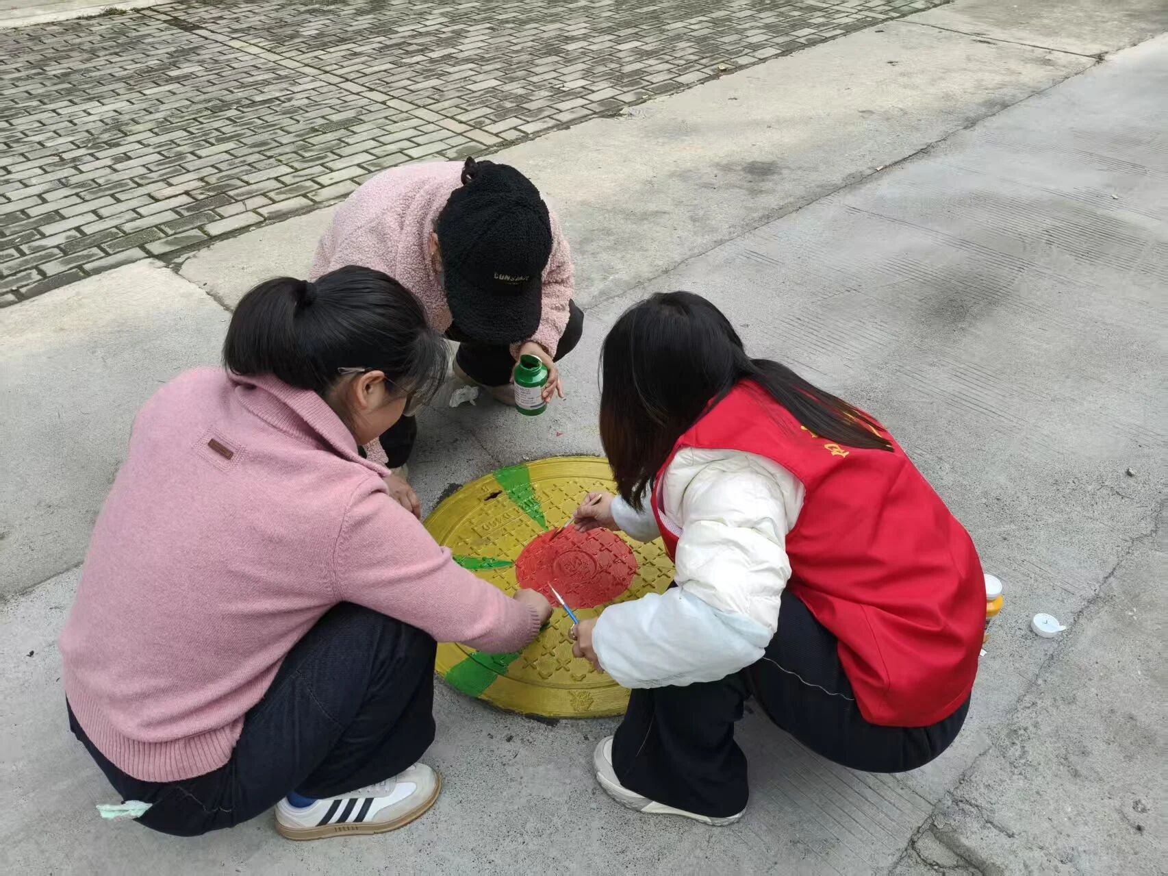 活动现场,大家以井盖为画布,结合社区“山墙文化”特色与文明创建主题,精心勾勒出生动的图案。居民们围在一起提笔创作,志愿者们细心补色,社区工作人员全程保障,让小小的井盖成为连接邻里情感、传递生活美学的载体,也让“我的家园我做主”的共治意识在指尖传递。