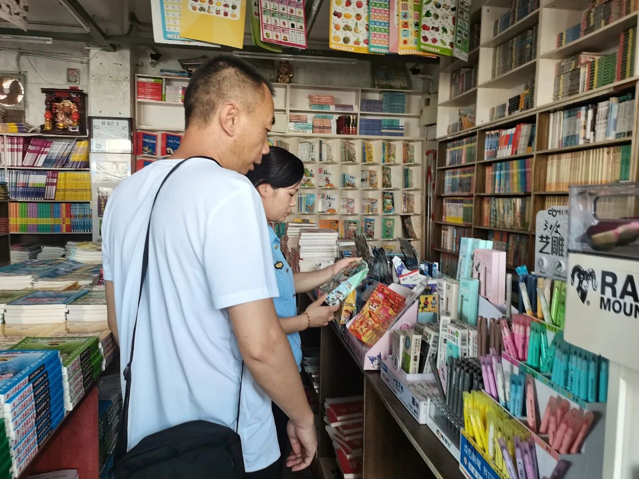 这支“文化警察”队伍在广华中学周边商铺仔细巡查,不放过任何一个角落。他们穿梭在商铺间,眼神犀利如鹰,步伐坚定如铁,誓要守护好我们的文化绿洲!一次次询问,一次次翻阅,重点检查商家是否售卖盗版侵权或擦边书籍,是否销售含有有害内容的儿童绘本、卡通漫画等。同时,他们还化身为普法小能手,耐心地向商家们讲解相关的法律法规,提醒他们诚信为本,守法经营,不要因为一时的贪念而触碰法律的红线。