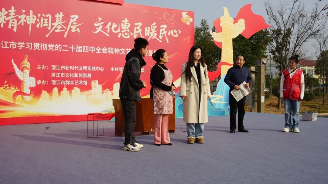 为让党的二十届四中全会精神在基层落地生根、直抵人心,12月9日下午,潜江市“学习贯彻党的二十届四中全会精神文艺宣讲进基层”活动在高石碑镇曾岭村文体广场热闹开演。整场活动以文为媒、以艺传声,将党的创新理论与群众喜闻乐见的文艺形式深度融合,让党的二十届四中全会精神如春风化雨般浸润基层土壤,走进千家万户。