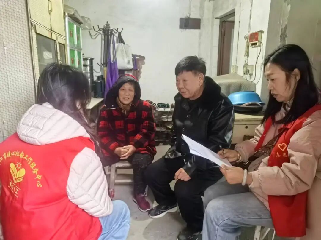 走访过程中,社区工作人员与暖心社工深入老人家中,细致询问健康状况、倾听生活诉求。针对冬季用电用火安全隐患,重点排查线路老化等问题,现场对接后续整改事宜;面对老人们关心的医保缴纳、养老认证等实际需求,能即时解决的便现场协助办理,用高效服务化解难题。