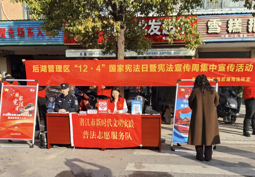2025年12月3日,在第十二个“国家宪法日”来临之际,后湖管理区组织司法所、派出所、禁毒办、社工部、木剅口社区等多部门联合在后湖农贸市场开展宪法宣传周法治宣传活动,以群众喜闻乐见的方式普及宪法知识,弘扬法治精神。