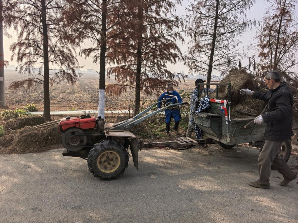 在整治现场,一派热火朝天的忙碌景象映入眼帘。道路旁,村民们合力将清理的枯枝杂草装上农用拖车,有条不紊地进行转运处理;河道边,工作人员手持工具清理沟渠内的杂物与淤泥,让黑臭水体逐步恢复清爽;田埂间,大家挥着农具整理秸秆、杂草堆,让房前屋后、田间地头的环境变得整洁有序。