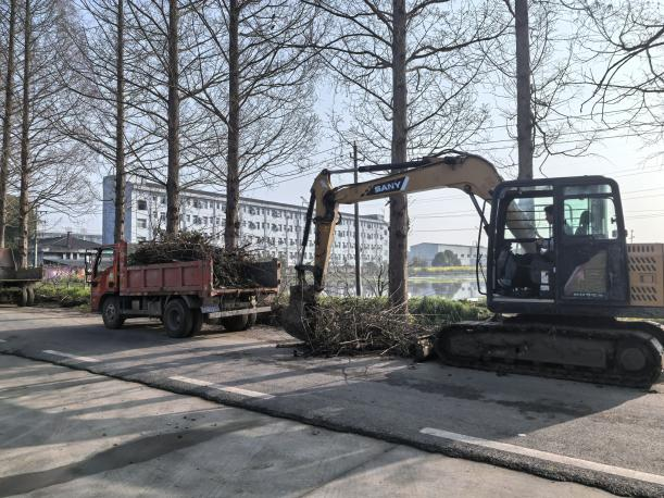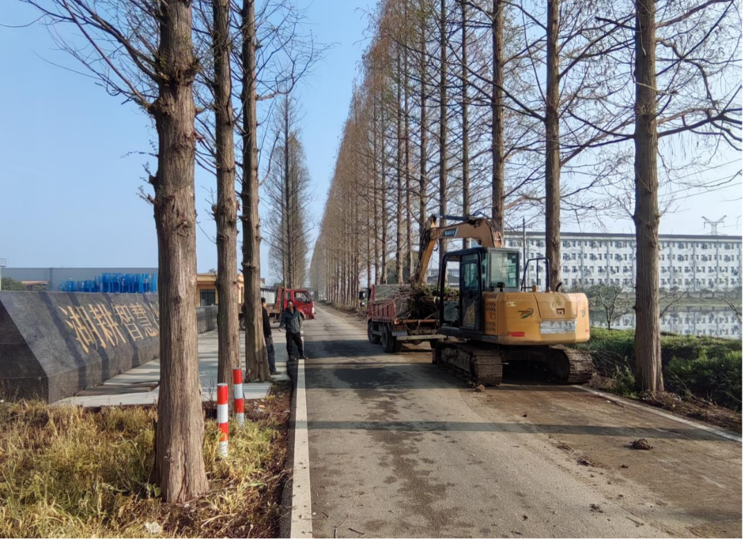 行动中,办事处采取机械作业与人工清理相结合的方式,全面清除沟渠内的淤泥、杂草,清理树行间的枯枝残叶及悬挂在树体上的藤蔓,疏通排水堵点,修复渠体面貌。同时,工作人员手持割草机、镰刀等工具,对道路两侧杂草进行全面清理。经过两天的连续奋战,累计清理沟渠近1000米,清运淤泥、垃圾等杂物40余车,修剪杂草约600平方米。厂区外围沟渠恢复排水功能,道路整洁通畅,周边环境焕然一新。
