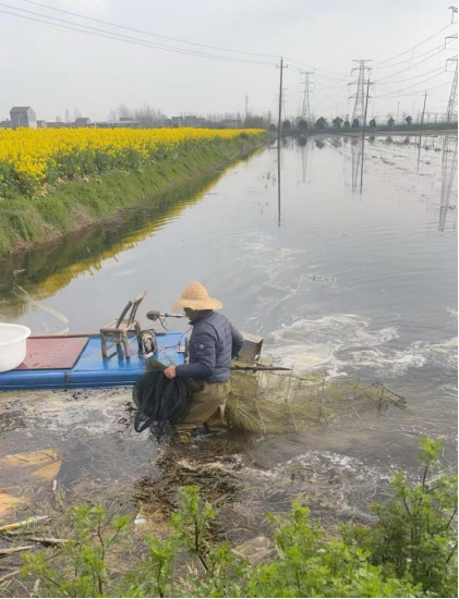 养虾大户袁成浩穿着防水裤,手握长柄镰刀,正缓缓走入波光粼粼的虾田。水面泛起层层涟漪,惊起几只越冬的水鸟。“立春过后,水温一回升,水草就疯长,不及时清理会抢氧气,虾苗就不好过了。”他弯腰抓起一把淤泥,黑褐色的泥土在指缝间流淌,散发着特有的腥香。
