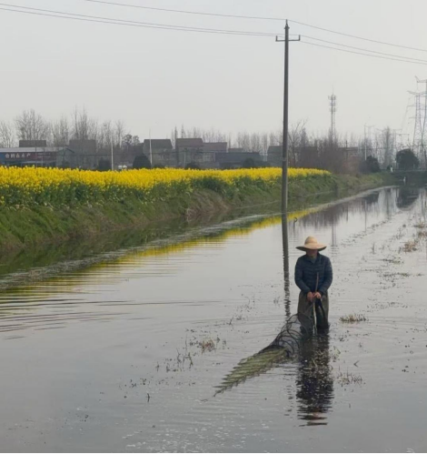 远处,三三两两的农户陆续下田,有的在检修农机,有的在清理沟渠,有的在整理虾田围网。田埂上,枯黄的草丛中已有嫩绿的新芽探出头来;水渠边,越冬的柳条泛起鹅黄;天空中,燕子归来的身影依稀可见。