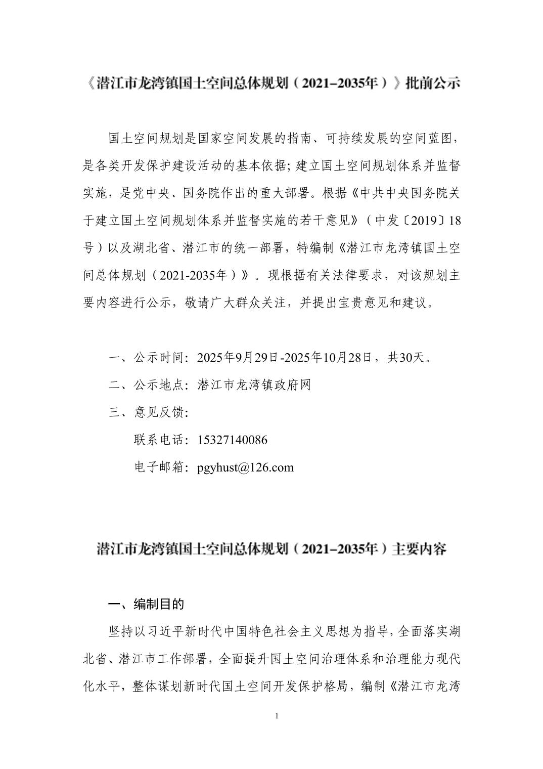 《潜江市龙湾镇国土空间总体规划(2021-2035年)》批前公示