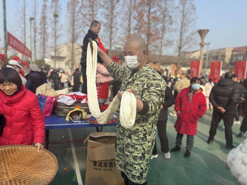 作为龙湾镇新时代文明实践工作的重要载体,本次“乡村村晚”跳出单纯演出的框架,将文明实践内涵深度融入活动全过程。活动现场,既有歌舞、戏剧、小品等精彩纷呈的文艺展演,展现章华历史变迁与人文风情;更有“办年货·赶大集”非遗美食体验、“写春联·送吉祥”文化惠民等特色活动,让村民在沉浸式参与中感受传统文化魅力,体验文明实践温度。诗词楹联学会的老师现场挥毫,将新春祝福化作笔墨书香;非遗传承人手把手展示豆饼、印粑粑制作技艺,让古老民俗在互动中代代相传。这些丰富多样的活动,正是镇新时代文明实践所践行“以文化人、成风化俗”工作理念的生动实践。