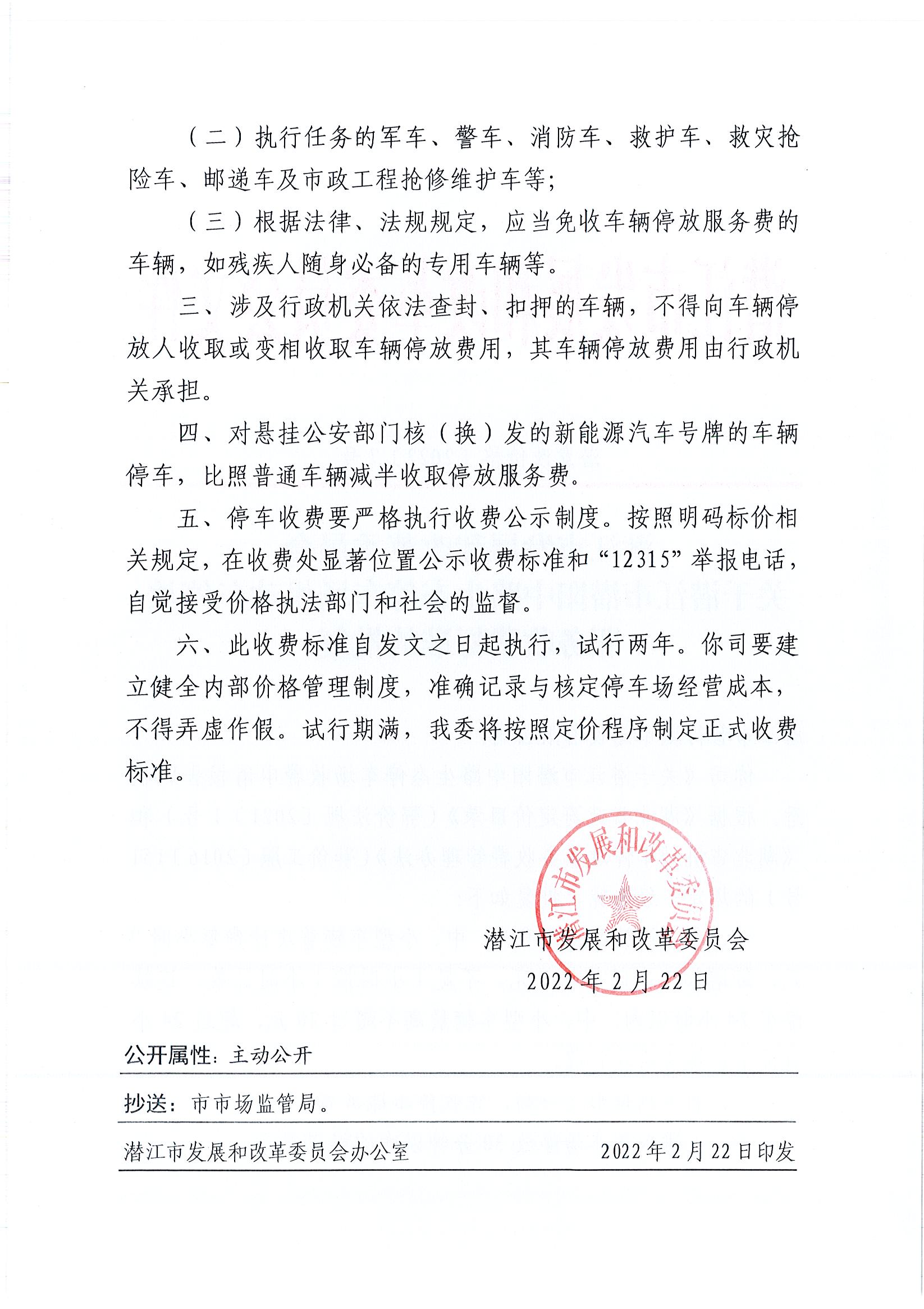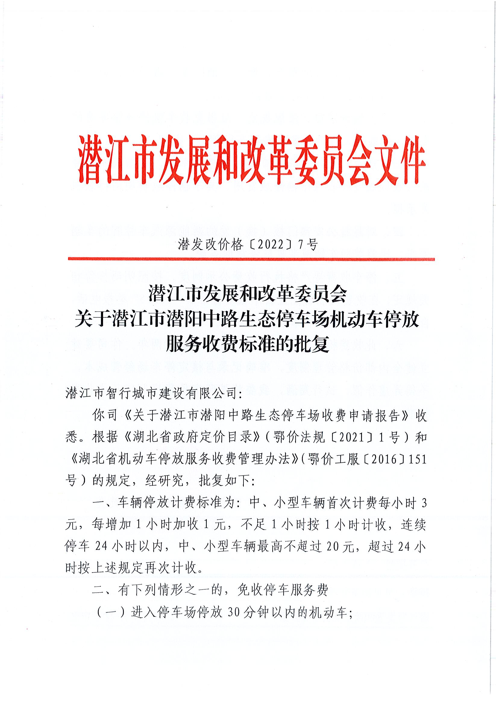 关于潜阳中路停车场机动车停放服务收费标准的批复