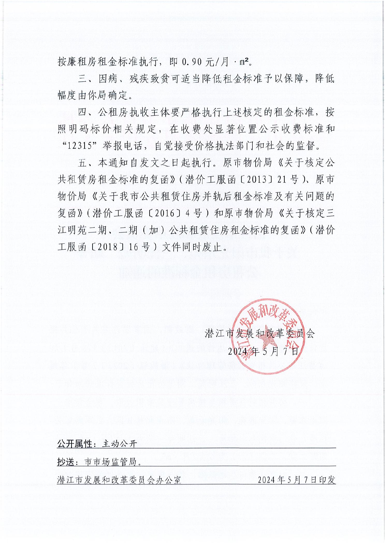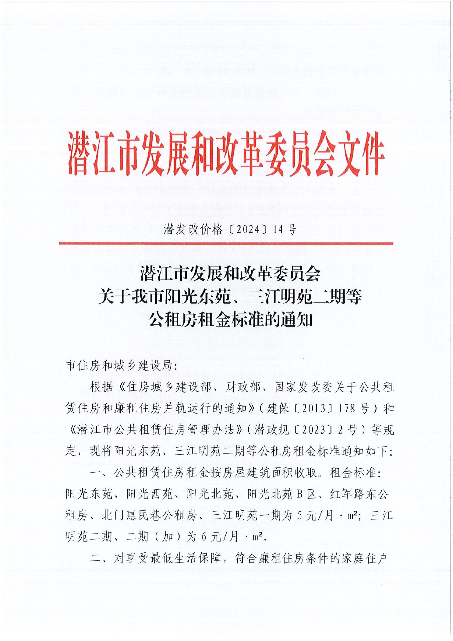 关于我市阳光东苑、三江明苑二期等公租房租金标准的通知