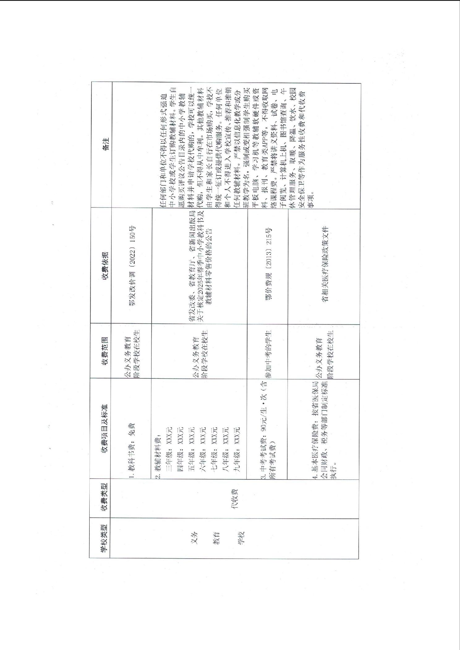 名 称: 关于明确2025年春季学期全市义务教育学校收费政策的通知