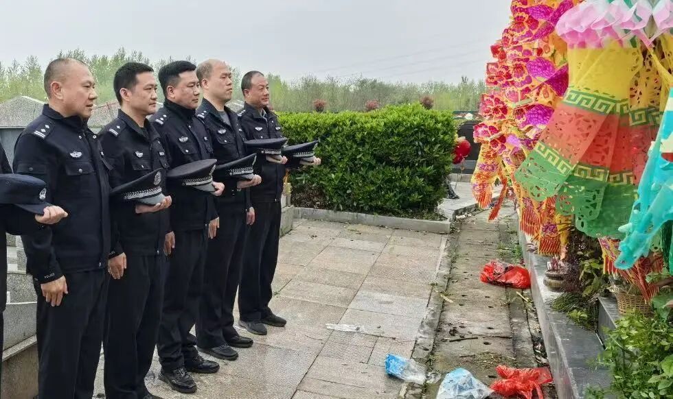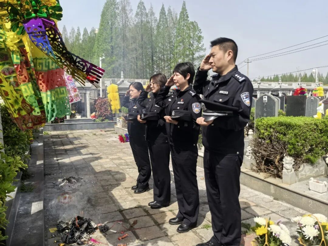 同日,政保大队民警怀着沉痛的心情,为因公牺牲民警刘千祥同志扫墓。刘千祥同志一生忠于公安事业,作风严谨、任劳任怨,在维护政治安全和社会稳定工作中兢兢业业、默默奉献,用忠诚与坚守筑起平安防线,不幸因公牺牲。大家轻轻擦拭墓碑,静静伫立缅怀,以朴素而庄重的方式,向曾经并肩作战的战友致以最深切的悼念,寄托无尽的追思。