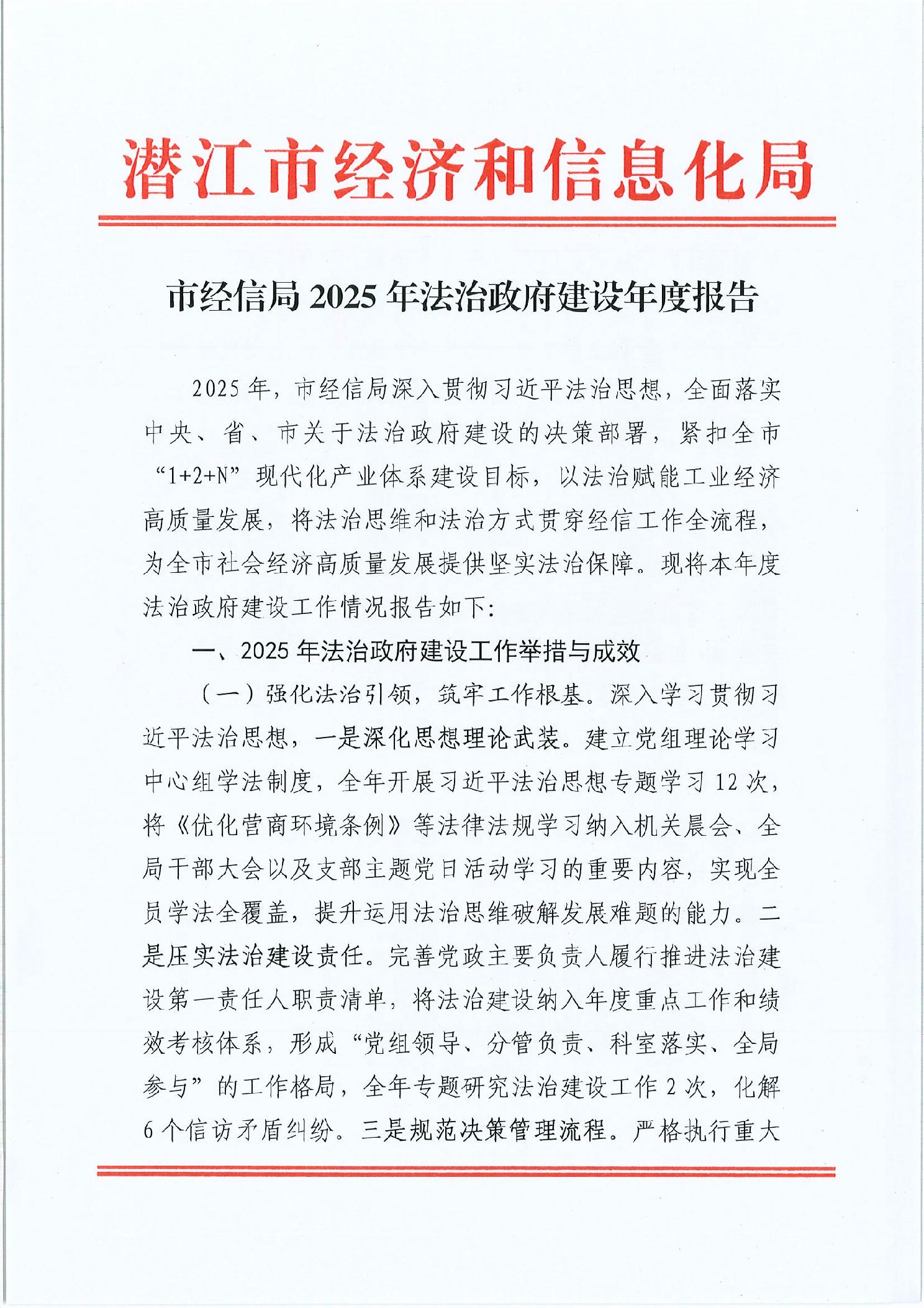 市经信局2025年法治政府建设年度报告