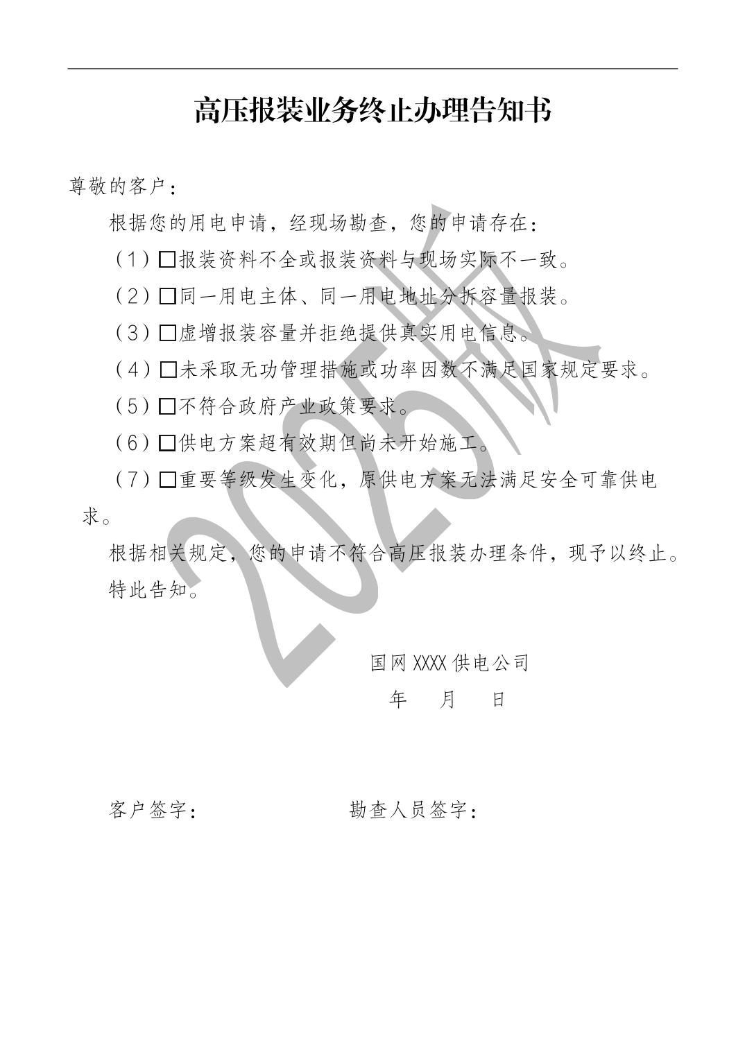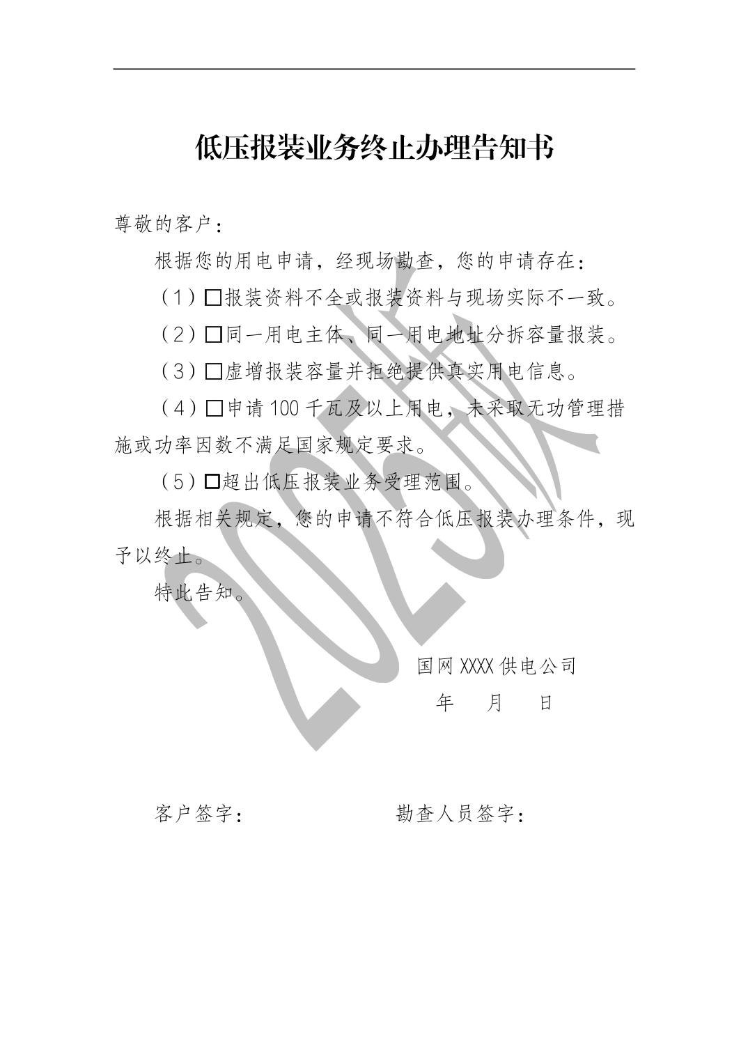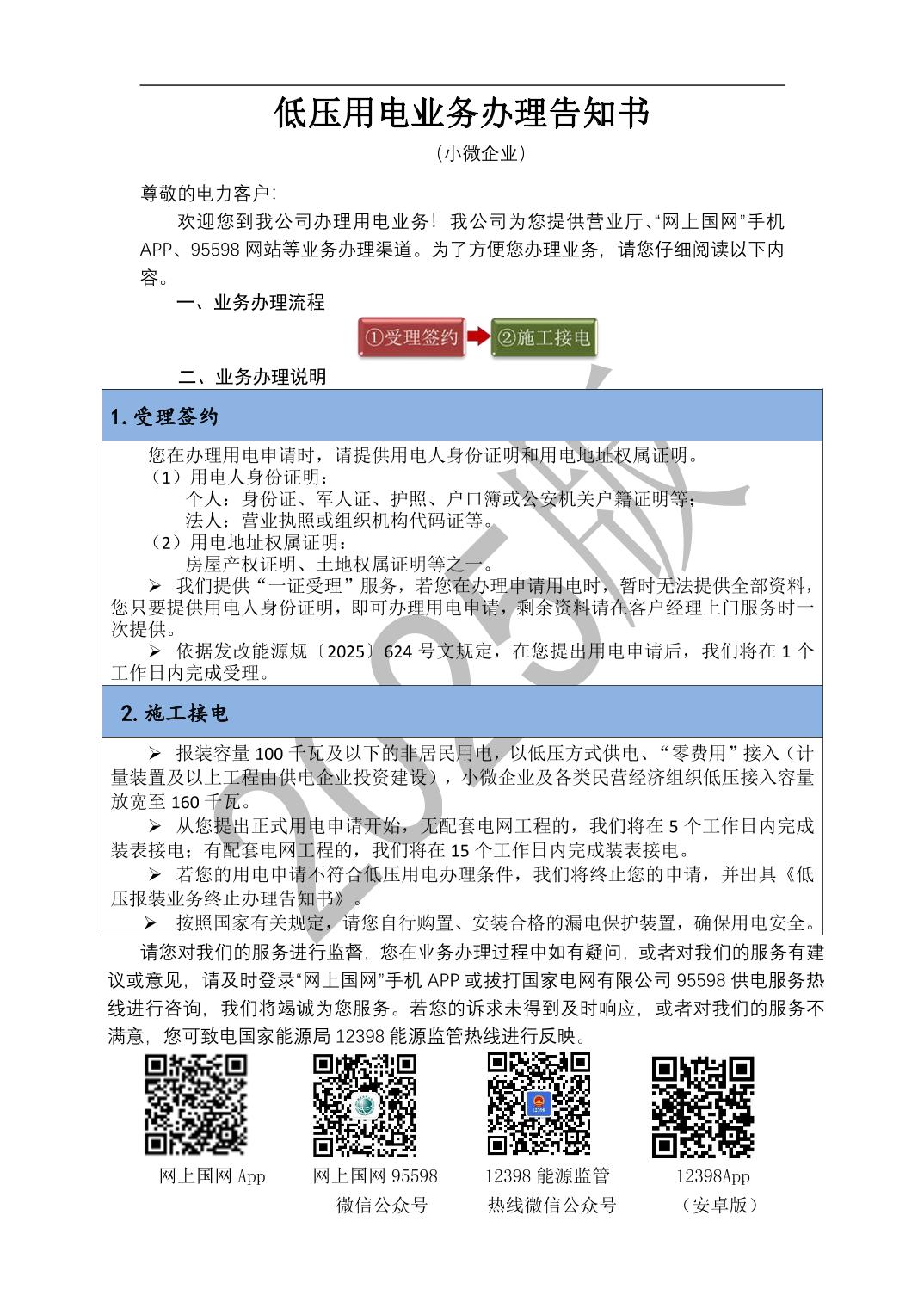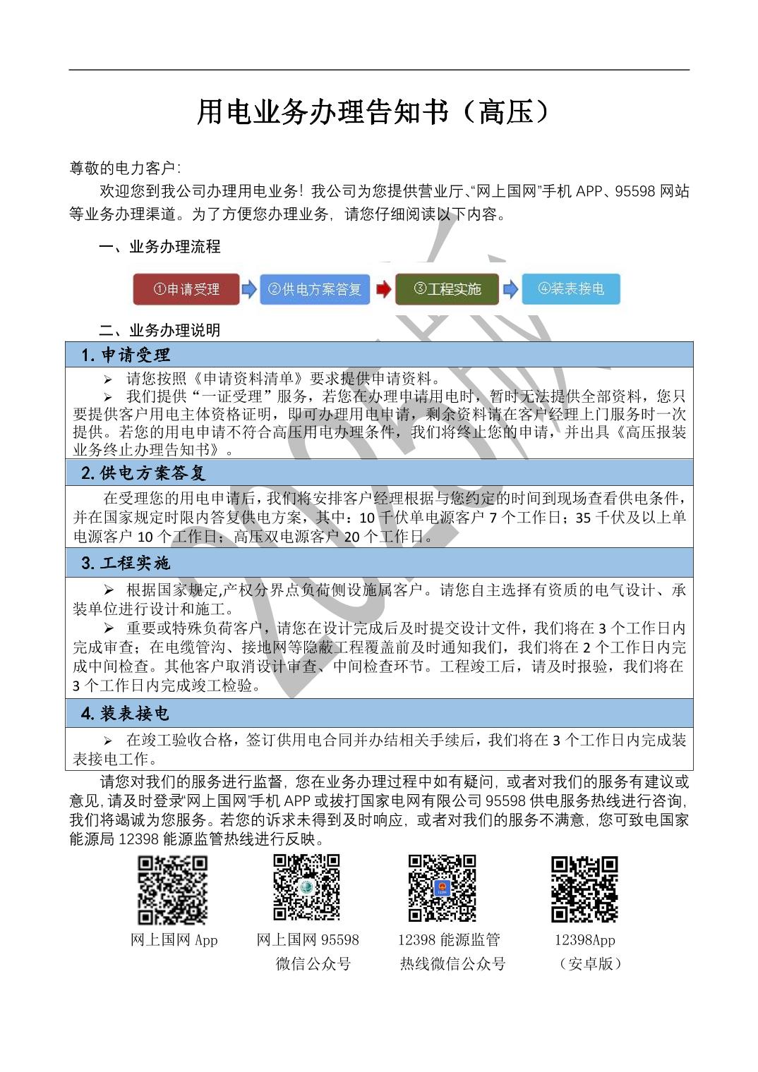 关于用电业务办理的告知书