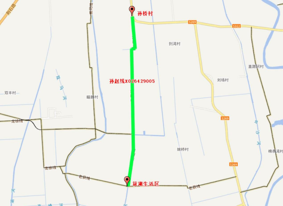 起 止 点:熊口镇孙桥村(S322)至熊口管理区荻湖办事处