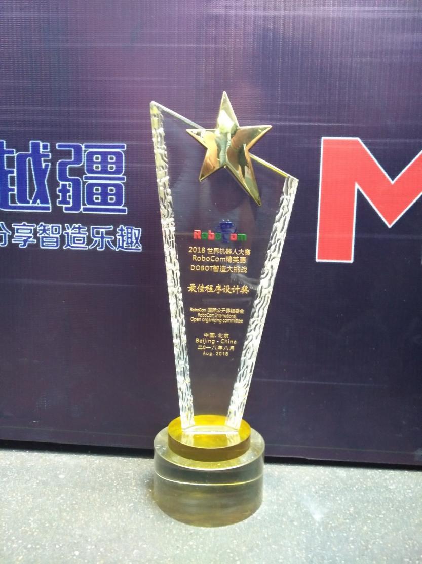 8月15日至19日,“2018世界机器人大赛——RoboCom精英赛——越疆DOBOT智造大挑战”在2018世界机器人大会现场同期举行。经过三天五场大战,我市选手廖子健、徐瑞青在Dobot智造大挑战中沉着冷静、勇往直前,采取稳中求快,减少调试时间等有效策略,最终力压对手,分别夺得个人技能赛第二名,联队竞技赛决赛第四名的好成绩,同时获得 “ 最佳程序设计奖 ” 称号。