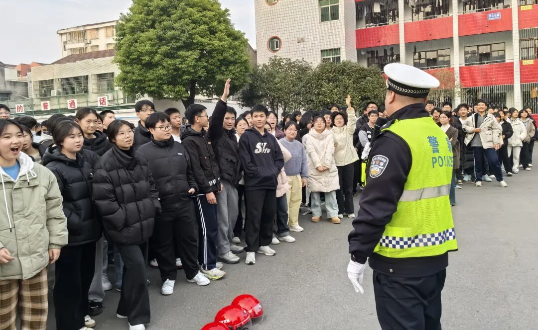 为切实守护学生群体出行安全,12月11日,潜江公安交警走进文昌高中开展交通安全宣传活动,以“知危险 会避险”为核心,通过实景演示、互动问答等形式,为同学们送上冬季交通安全“必修课”。