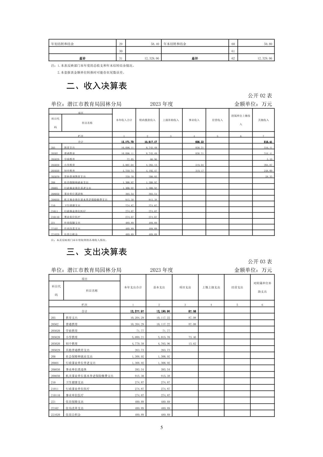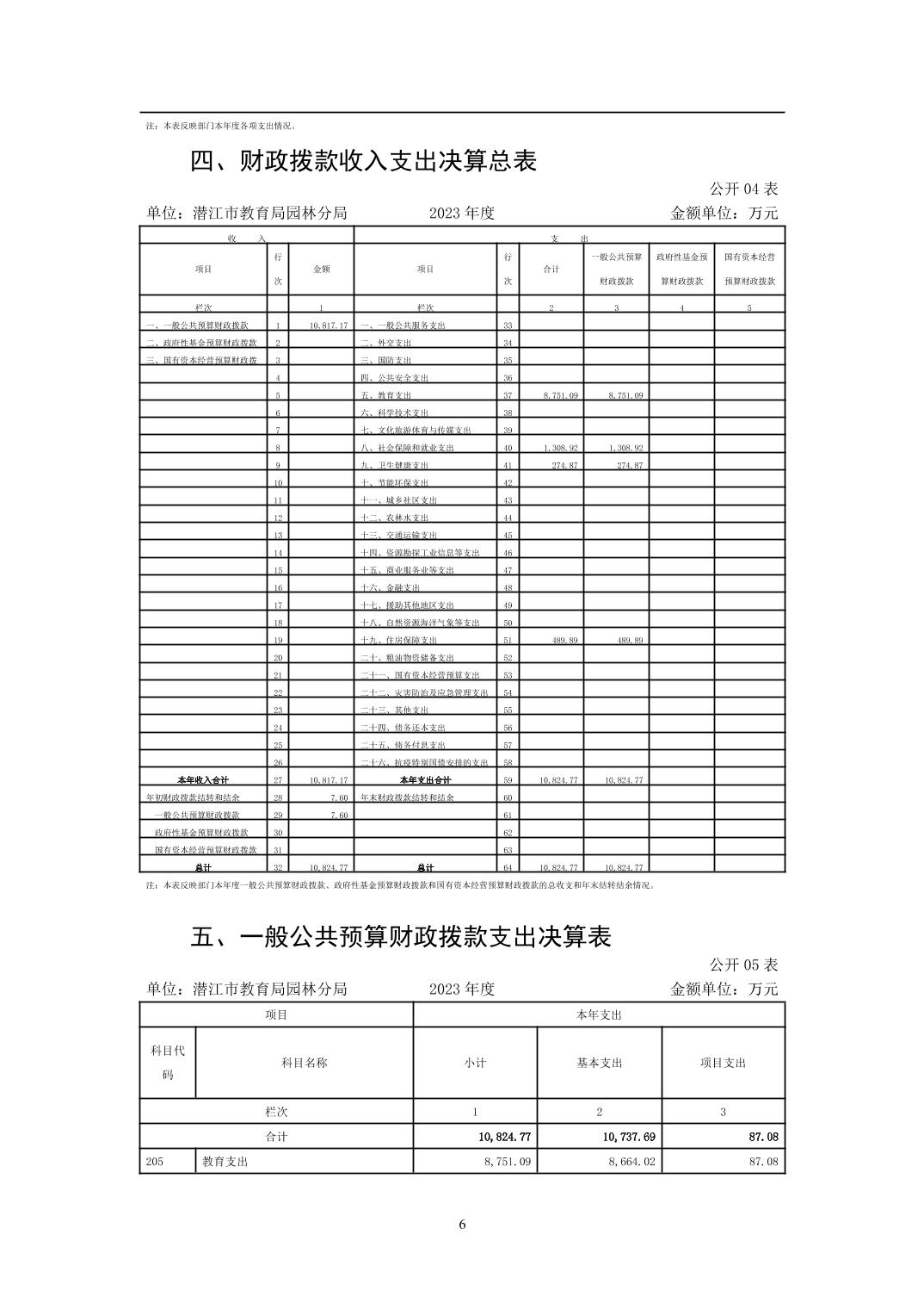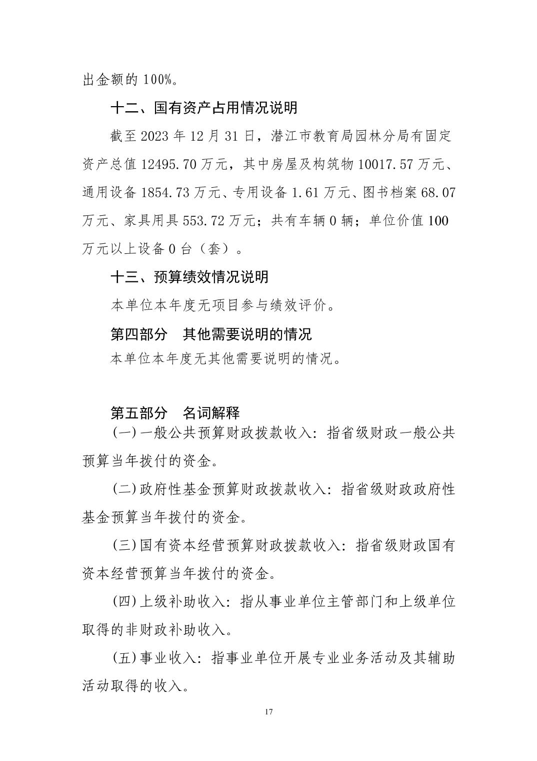 名 称: 潜江市教育局园林分局2023年度部门决算