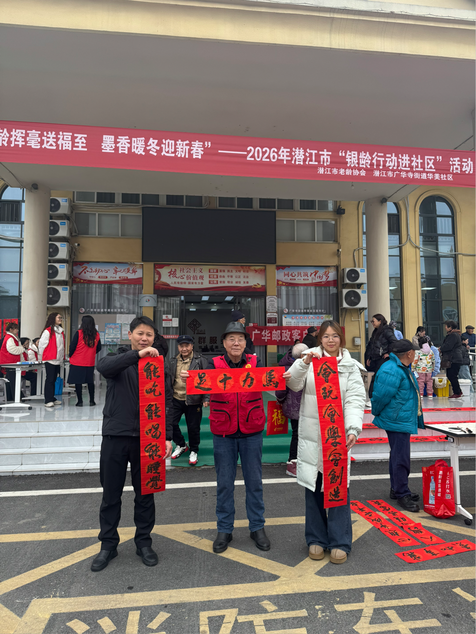 新春将至,年味渐浓。2月4日上午,由潜江市民政局、广华寺街道办事处主办,市老龄协会、华美社区承办的“银龄挥毫送福至,墨香暖冬迎新春”活动在广华寺街道华美社区党群服务中心温暖开展。活动以笔墨传递祝福,以服务温暖民心,营造出欢乐祥和、文明健康的节日氛围,生动展现了新时代老年人老有所为、乐于奉献的精神风貌。