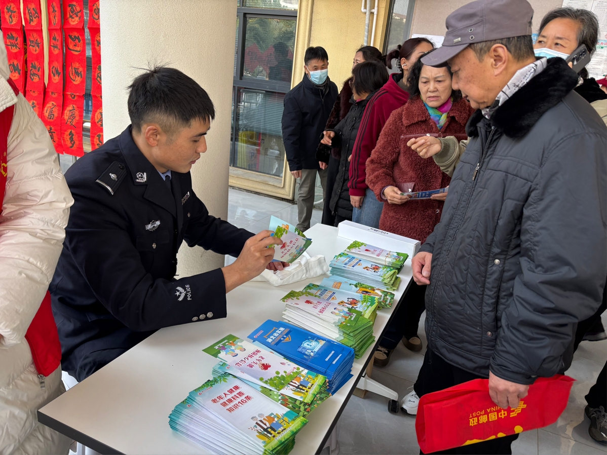 普法志愿者向居民发放《中华人民共和国老年人权益保障法》宣传册,结合实例讲解赡养、社会保障等政策;反诈民警通过典型案例,生动揭露养老诈骗与电信诈骗的常见手法,提升居民防骗意识。