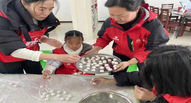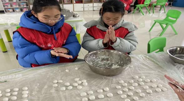 活动伊始,童伴妈妈与志愿者们结合马年新春元素,为孩子们讲述了元宵节的由来与传统习俗。“正月十五吃汤圆,寓意着新的一年全家团团圆圆、平平安安。”随着讲解结束,热闹的搓汤圆环节正式开始,现场桌案上,雪白的糯米粉、纯净水,在童伴妈妈的示范引导下,孩子们纷纷挽起袖口,从取面、捏揉再到搓圆,每一个步骤都充满了童趣。孩子们很快就搓出了圆润饱满的汤圆,引得现场阵阵欢笑。