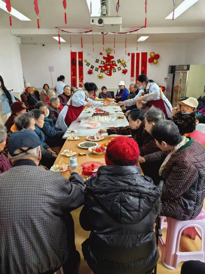 院领导代表全院职工向寿星老人们送上生日祝福,感谢老人们及其家属对我院工作的信任与支持,并叮嘱工作人员要一如既往地用心用情做好服务工作,并祝大家生日快乐!工作人员与老人们共唱生日快乐歌、许愿吹烛、分享蛋糕,还为老人们表演了节目。现场欢声笑语不断,老人们在热闹氛围中感受家的温暖。“在院里过集体生日太热闹了,比在家里还高兴,谢谢你们了。”一位新入住的寿星老人激动地对工作人员表示感谢。此次集体生日会,让老人们感受到了家一般的温暖和关怀,丰富了老人精神文化生活,拉近了彼此距离。