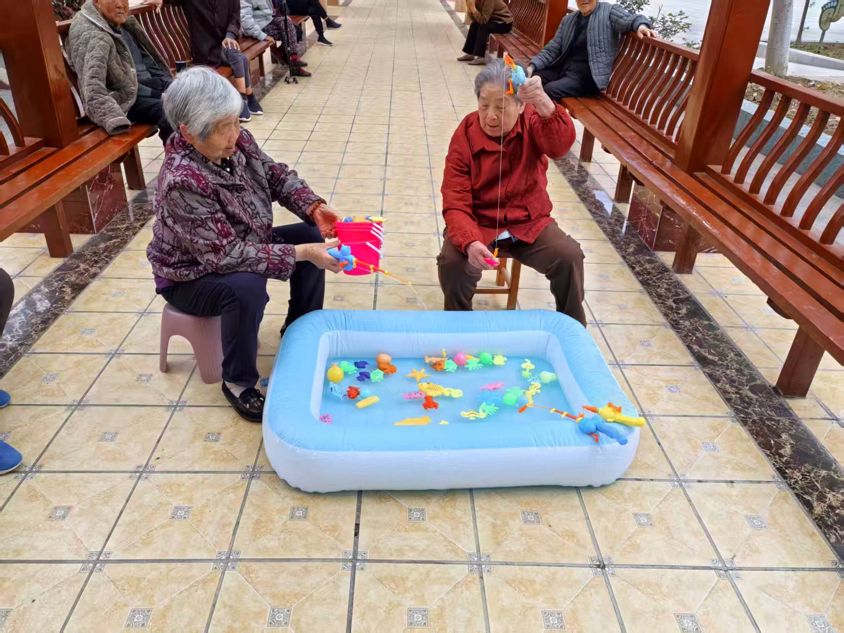 多样化丰富文娱活动。福利院充分考虑到老年群体的身体状况与兴趣喜好。精心挑选了一系列动静相宜、轻松愉悦的游乐项目:趣味十足的钓玩具鱼、传承经典的投壶游戏、创意满满的穿积木珠DIY,还有氛围感拉满的卡拉OK,让不同兴趣爱好的老人都能在活动中收获快乐,感受温暖。