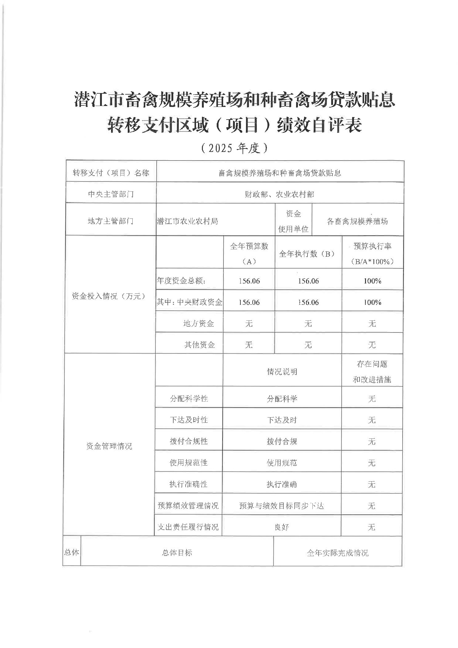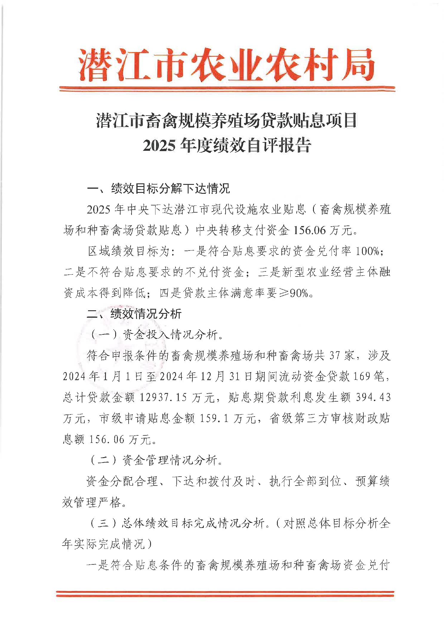 潜江市2025年度畜禽规模养殖场贷款贴息绩效自评报告