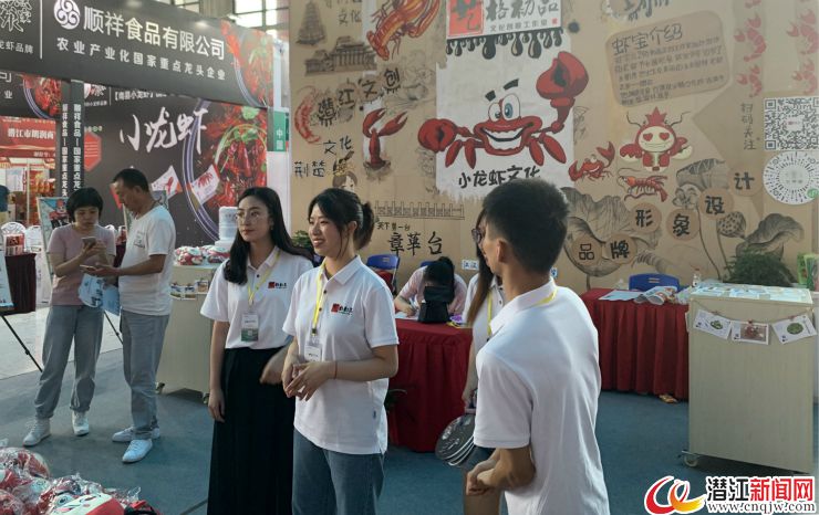 纵观今年的虾稻产业博览会,除了传统的烹虾、吃虾,潜江龙虾文化产业绝对算的上新鲜事物。2019潜江龙虾主题文化创意设计大赛的优秀作品正在龙展馆内展出,一幅幅饱含作者心血的艺术作品,或活泼可爱,或时尚炫酷,别出心裁的设计和创意吸引了不少参展人驻足观看。与大赛优秀作品展台隔道相望的正是大赛二等奖作品“虾宝”的展台,这只由江汉艺术职业学院学生团队设计的 “虾宝”公仔通体赤红,圆圆的脸蛋上挂着大大的眼睛,让人爱不释手。