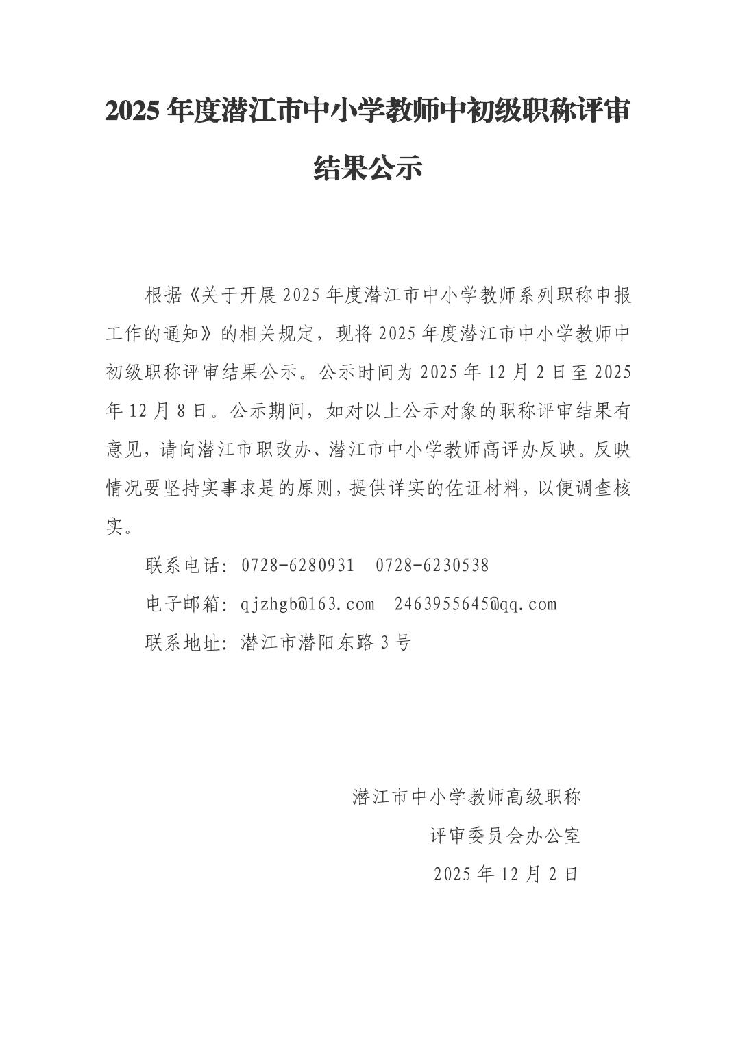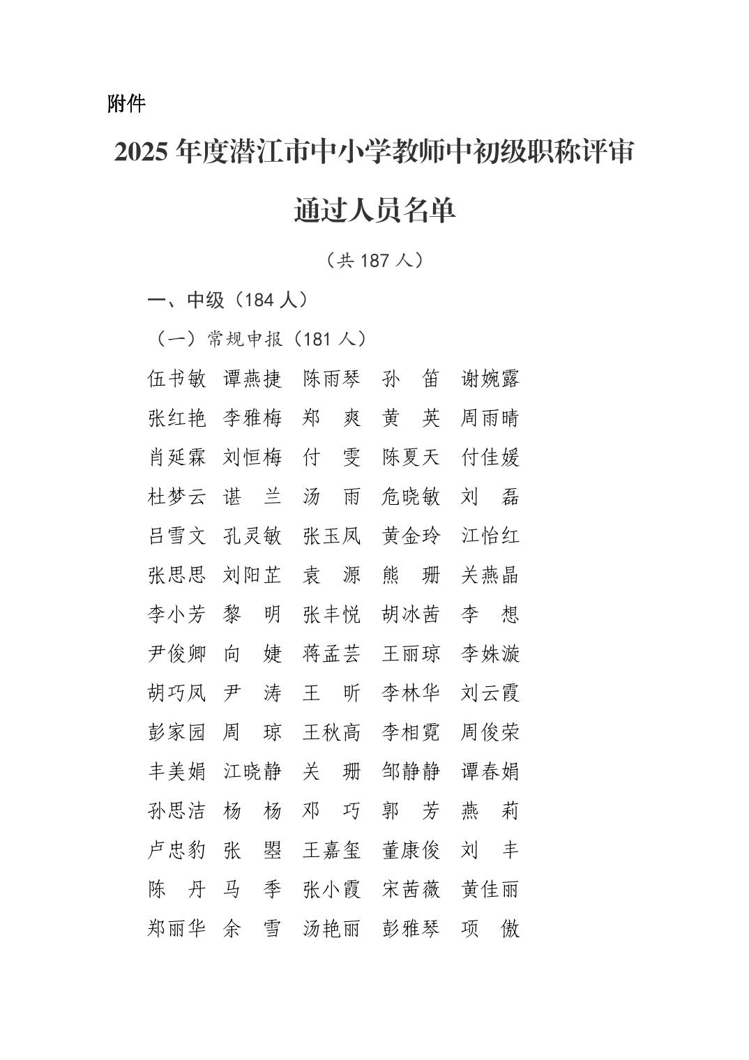 2025年度潜江市中小学教师中初级职称评审结果公示