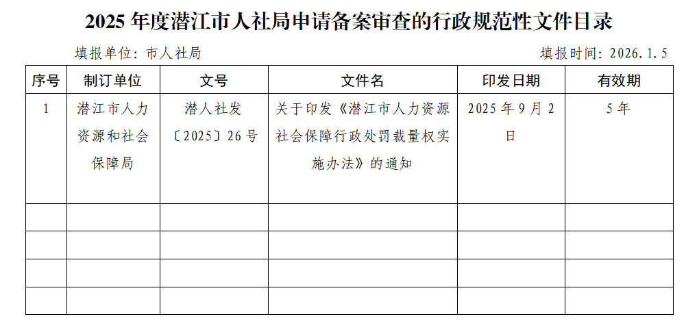 2025年度潜江市人社局申请备案审查的行政规范性文件目录