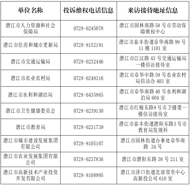 为深入推进群众身边不正之风和腐败问题集中整治工作,进一步畅通投诉举报维权渠道,高效处置政府项目、国企项目拖欠农民工工资问题,现将各相关主管部门投诉举报维权方式公布如下: