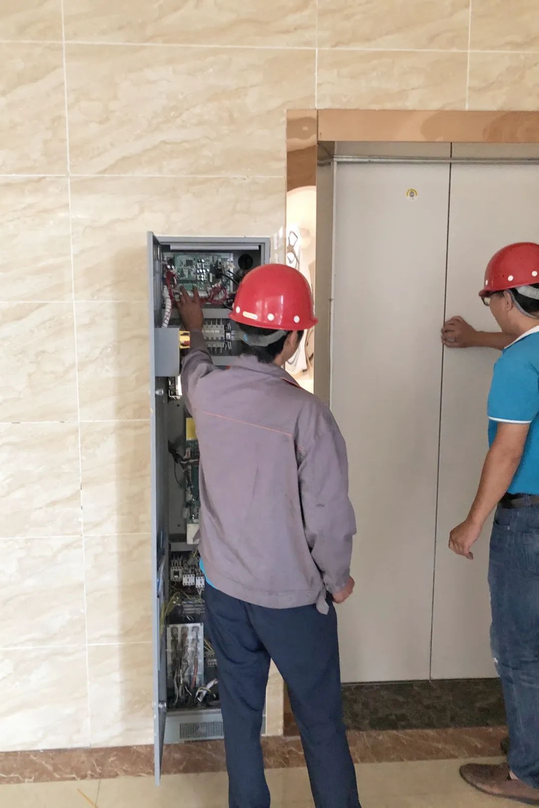 维保人员进行电梯故障排查,修复完毕后电梯正常投入使用,切实排除安全隐患。