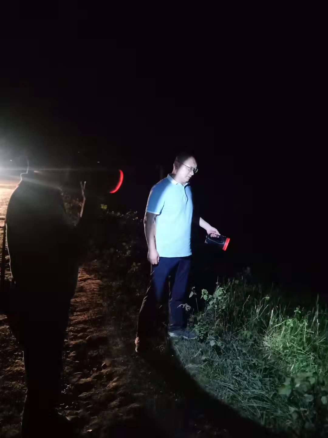 局长彭卫华(右)夜巡防守段面,确保段面安全。