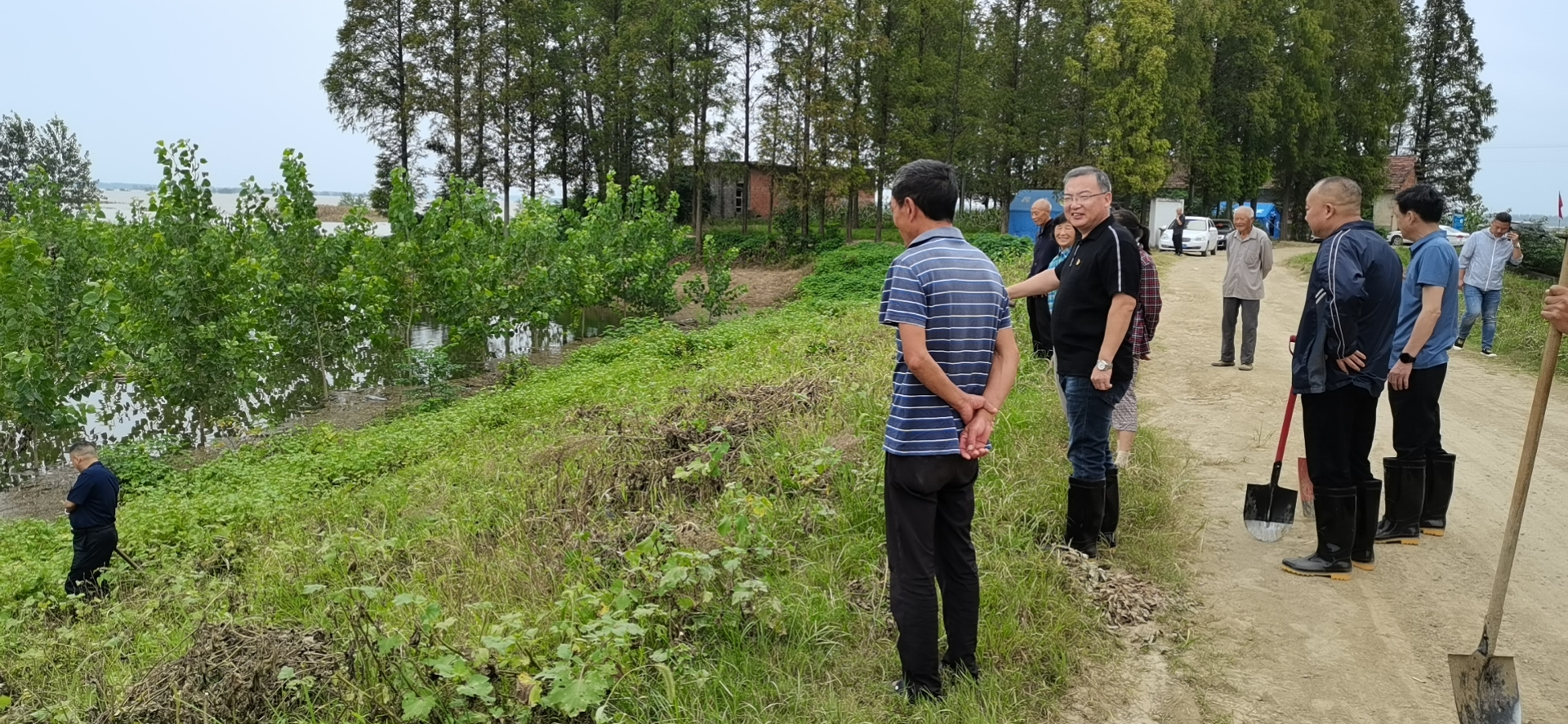 党组成员、副局长朱甫军(左三)带队巡查段面,并带领村民清除杂草。