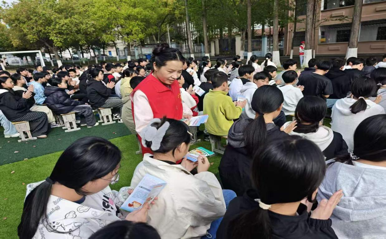 活动中,司法所工作人员发放《中华人民共和国民法典》、《中华人民共和国未成年人保护法》、《中华人民共和国预防未成年人犯罪法》等相关法律条款宣传册,同时用通俗易懂的语言向学生讲解行为边界与法律后果,引导学生认清违法犯罪危害,树立“学法、懂法、用法”观念。