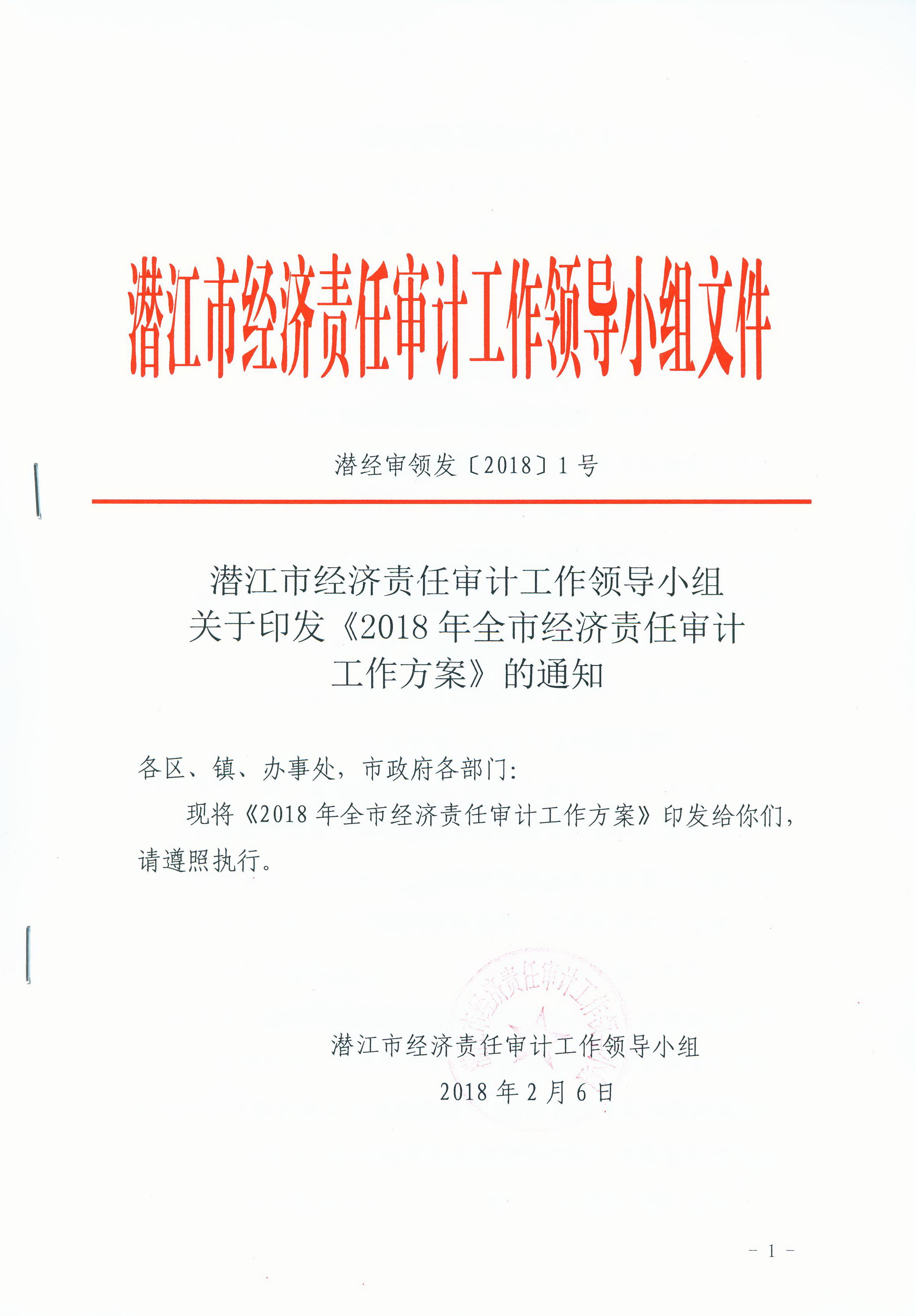 潜江市经济责任审计工作领导小组办公室 2018年2月6日印发