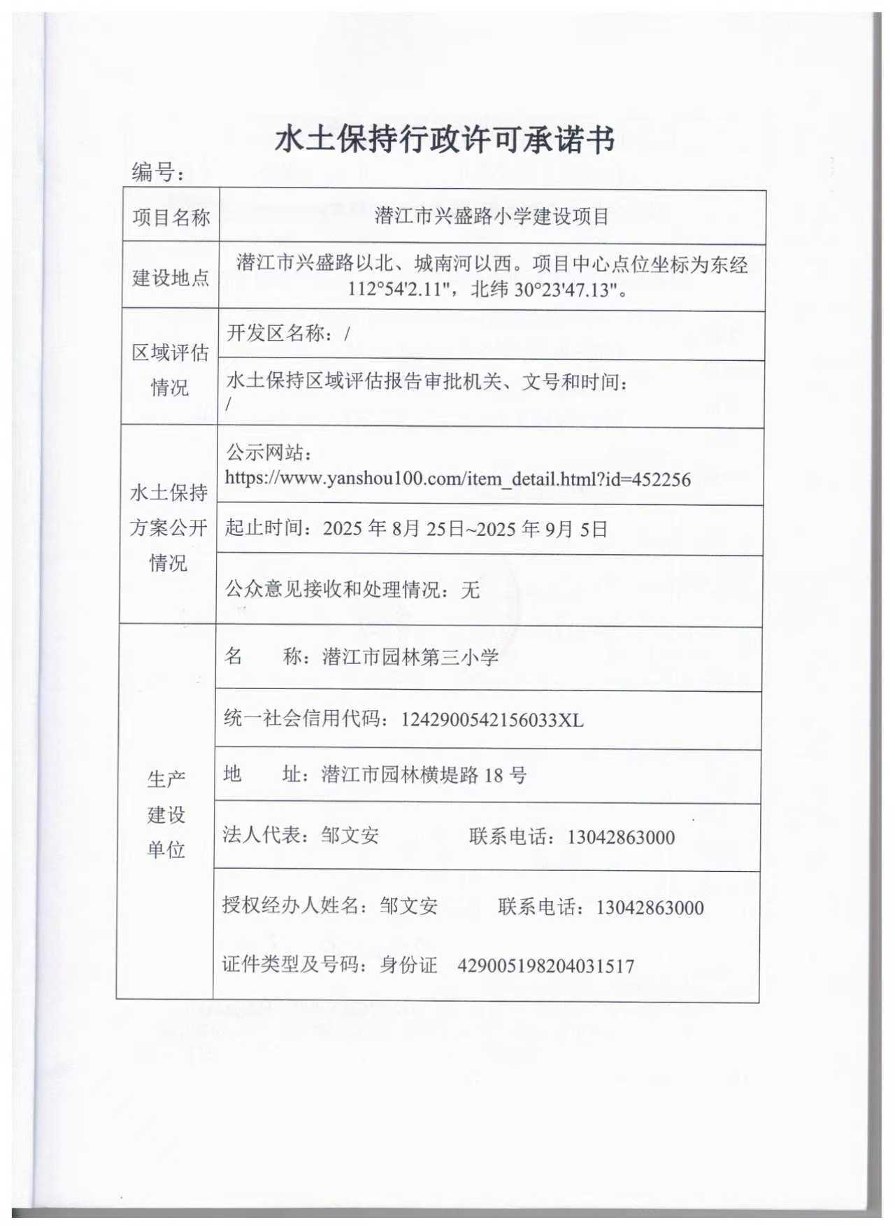潜江市园林第三小学潜江市兴盛路小学建设项目水土保持方案许可
