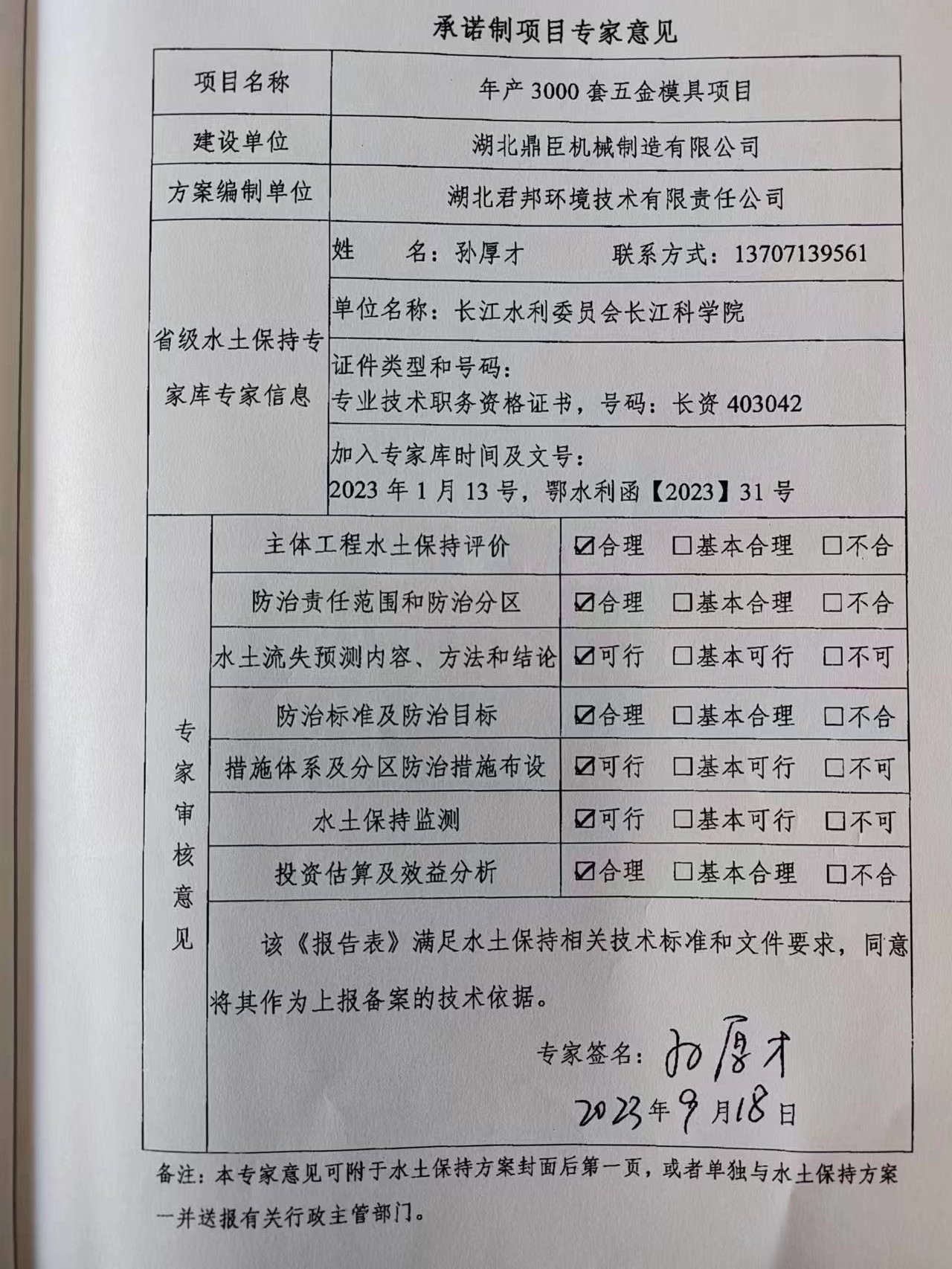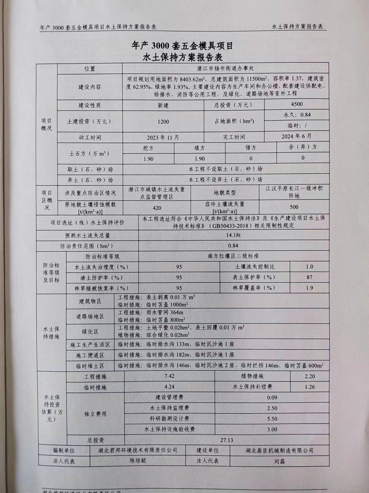 湖北鼎臣机械制造有限公司工程建设水土保持方案批复