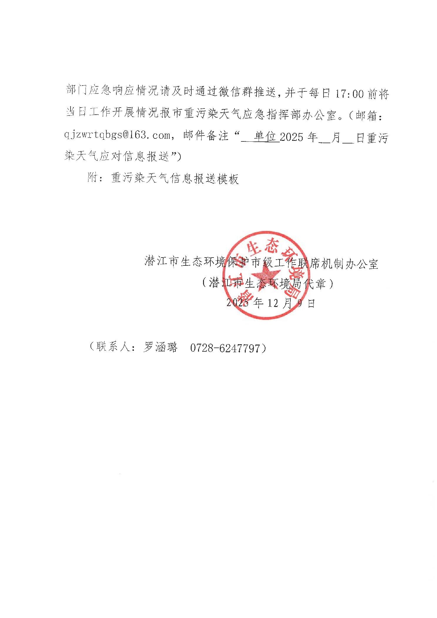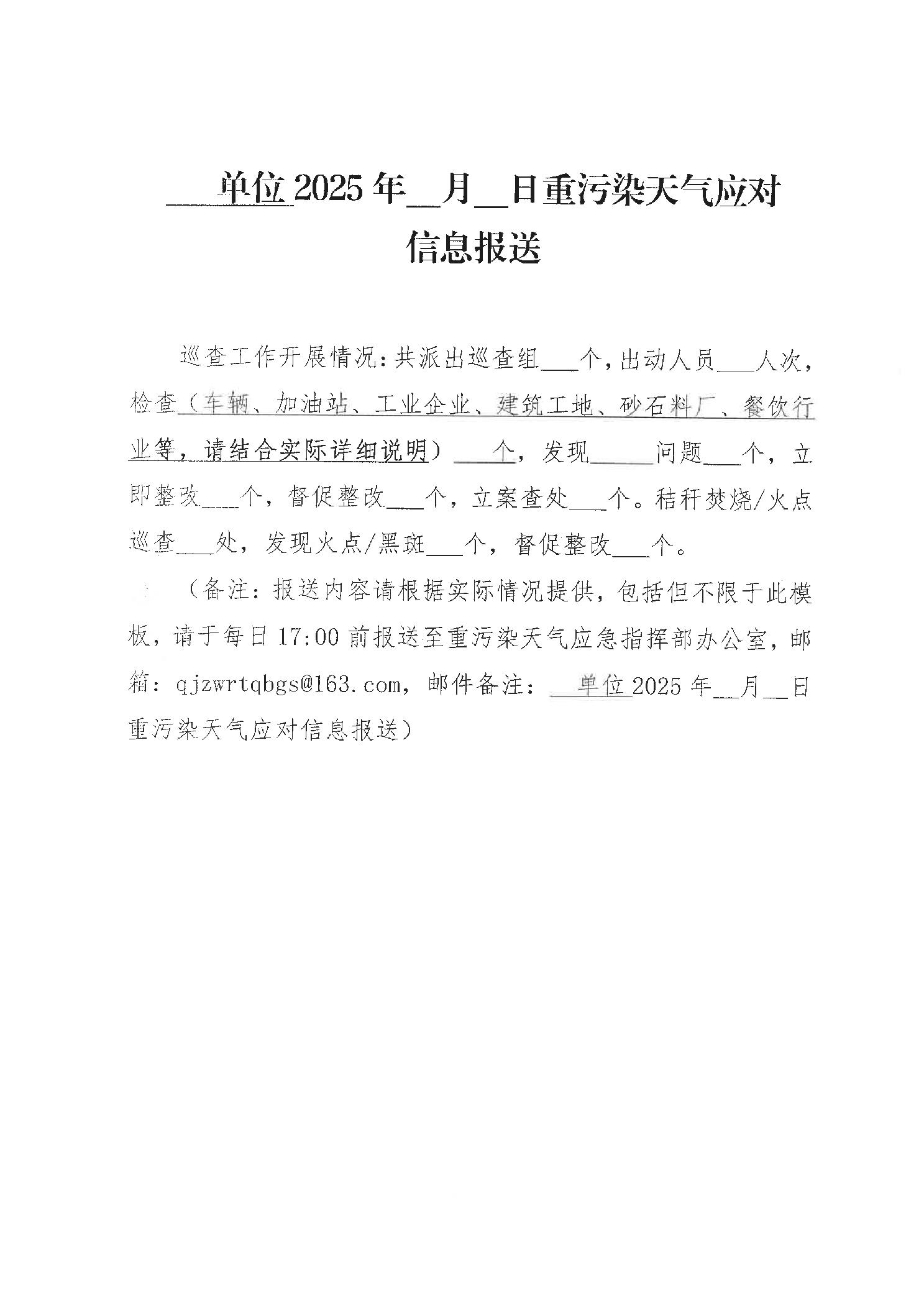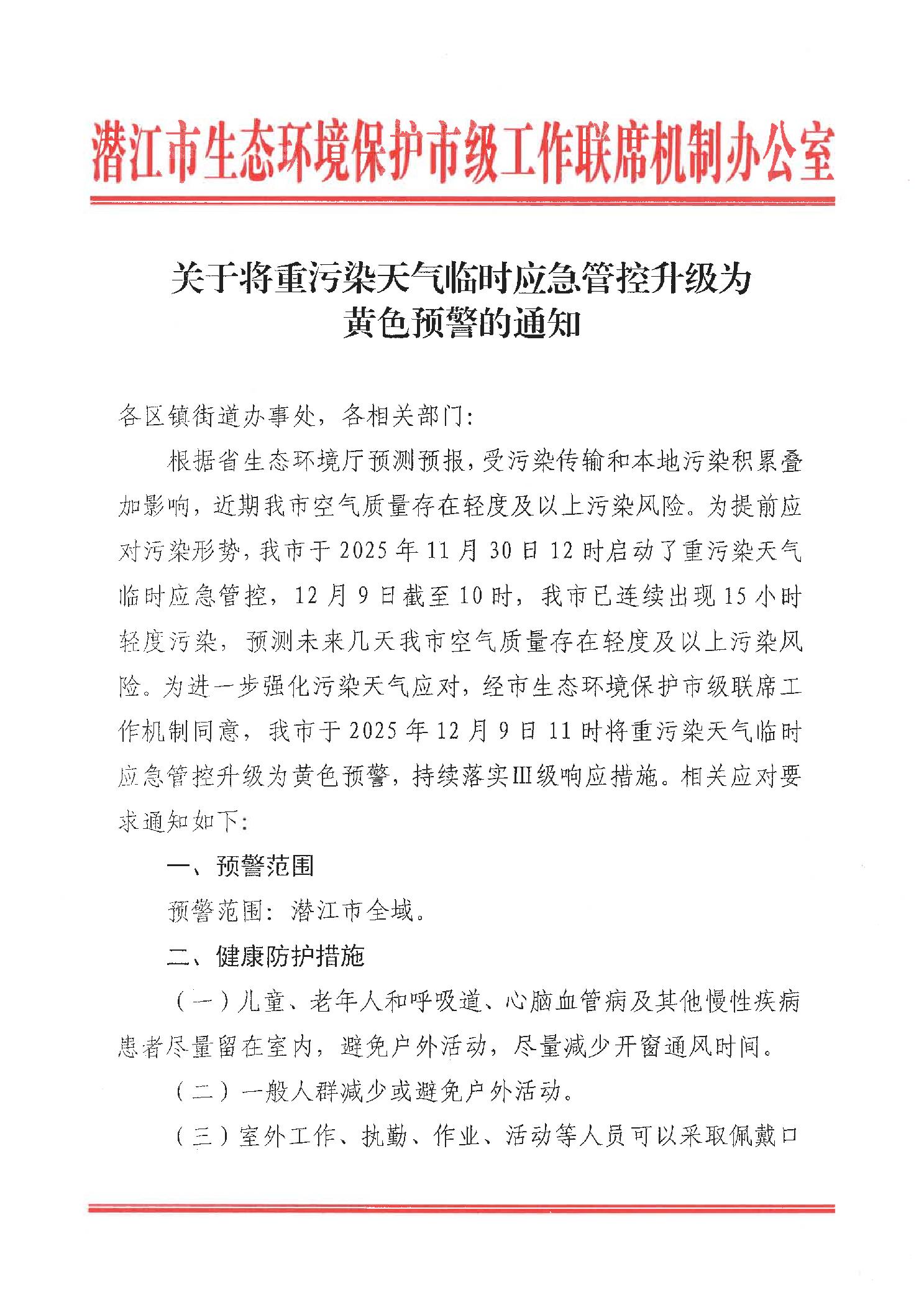 关于将重污染天气临时应急管控升级为黄色预警的通知