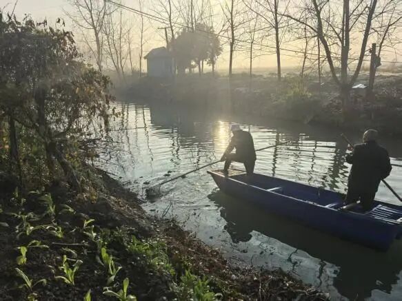 环境整治既要扮靓“面子”,更要做实“里子”。刘桥村以虾-稻产业为主导,4000亩农田的丰产增收离不开优质水源保障。为此,村里将河道整治作为重点任务,集中力量对跃进河开展清淤攻坚,从源头改善水环境。