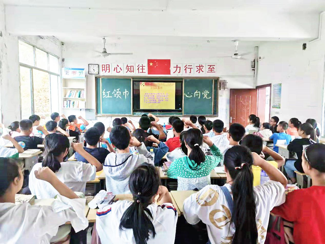 潜江市曹禺中学开展“红领巾心向党,争做新时代好队员”主题队日活动,少先队员们重温入队誓词,合唱中国少年先锋队队歌,一起学习了少先队队旗、队徽、队礼、队歌等知识。