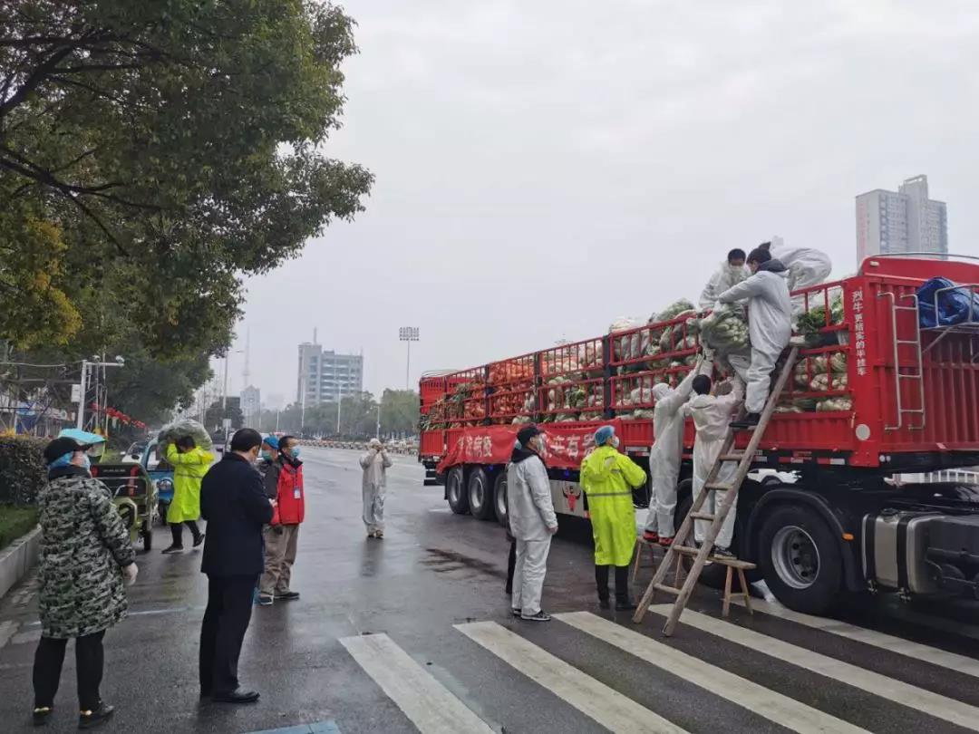 21日上午10点,一辆满载新鲜蔬菜的大货车驶入潜江,将来自多彩贵州的满满爱心传递而来。