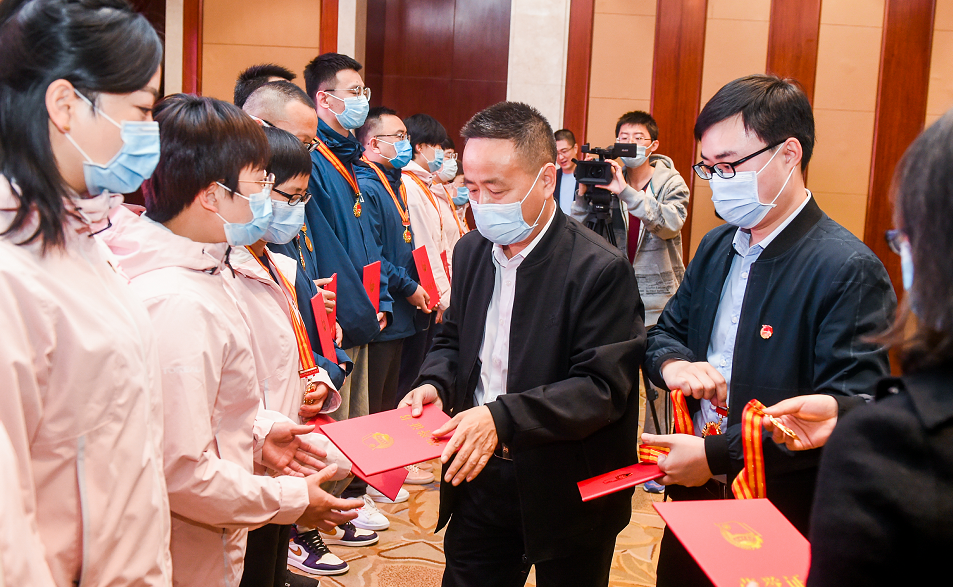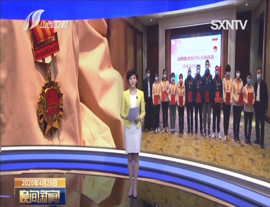 在“五四”青年节来临之际,4月29日上午,潜江团市委、卫健委有关领导赶赴山西,为山西对口支援湖北医疗队潜江分队的49名队员送上“潜江市青年五四奖章”。据共青团潜江市委副书记朱康介绍,作为潜江市青年的最高荣誉称号,此次颁发的潜江青年五四奖章也是潜江市建市以来第二次颁发。山西卫视对此次颁奖进行了跟踪报道。