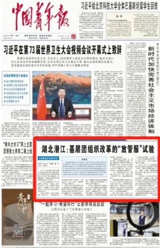5月19日,潜江共青团基层组织改革作为全国共青团改革开栏之篇在中国青年报头版报道,该报道重该报道重点讲述了潜江共青团基层组织改革团内的“放管服”试验,而市委的坚强领导是改革的根本保证.为给潜江共青团改革创造良好的环境,市委加强顶层设计整体谋划,打造了党的全面领导下关心支持共青团改革的“放管服”经验样板。