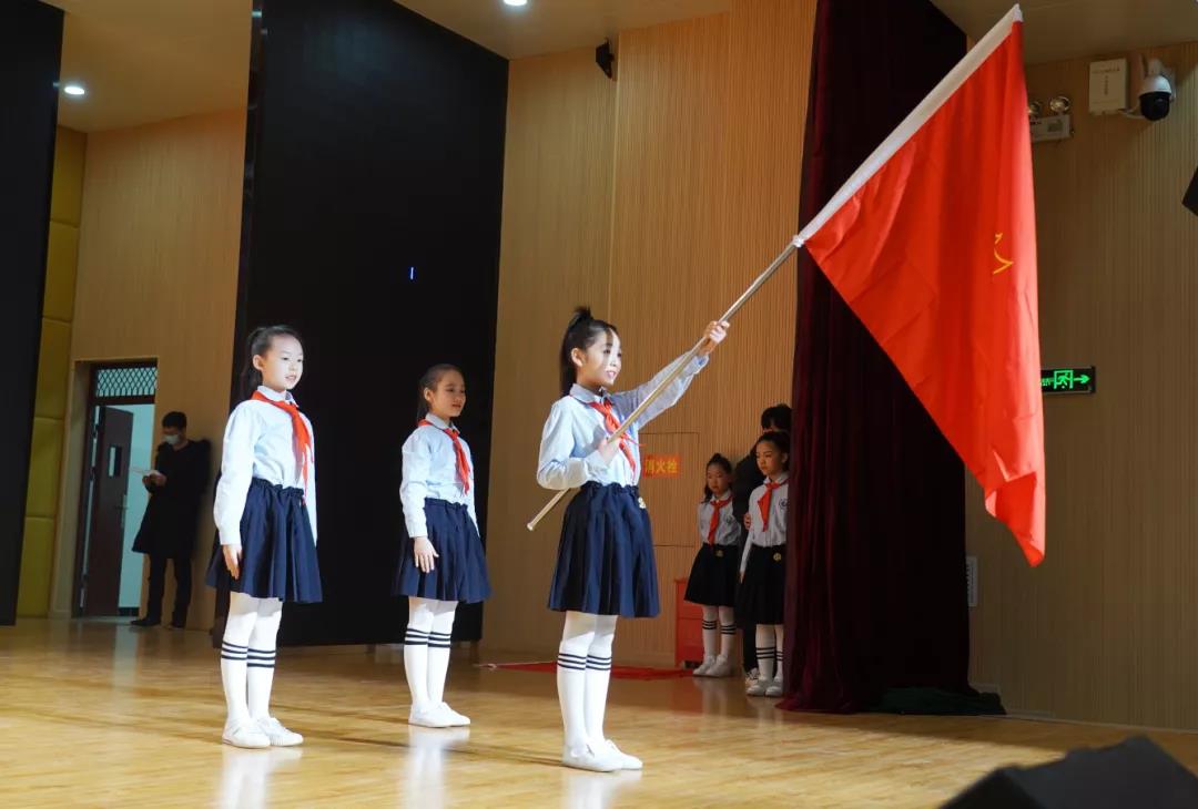 大会在庄严的国歌声中开始,随后少先队员代表迈着整齐矫健的步伐,手执队旗,进行庄重的出旗仪式。
